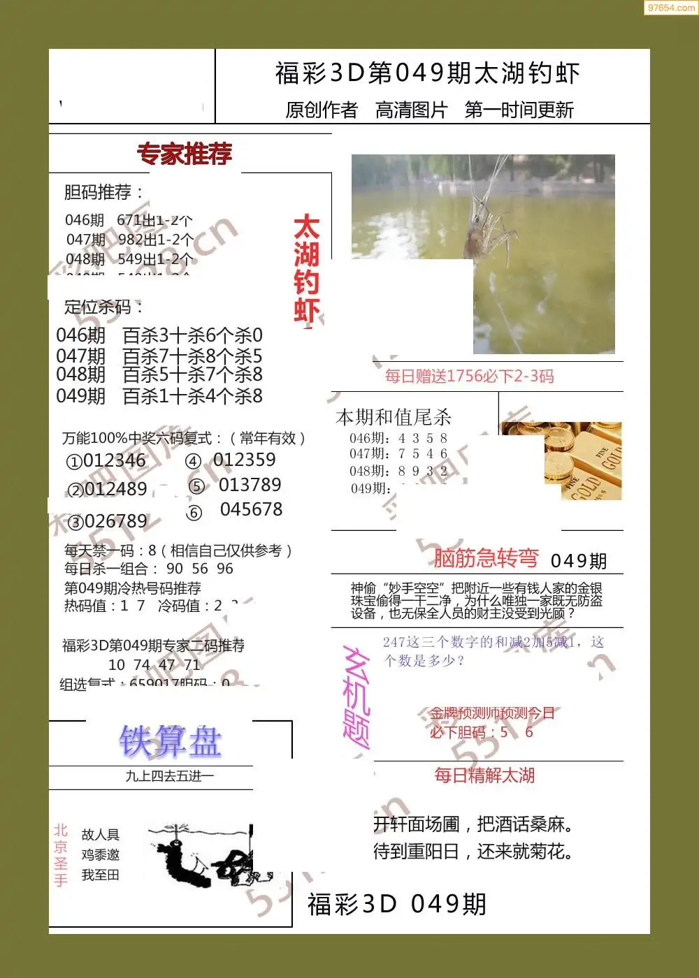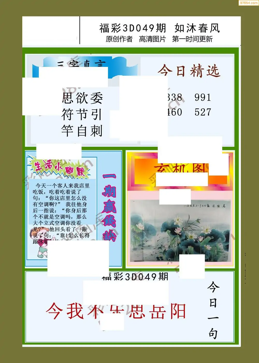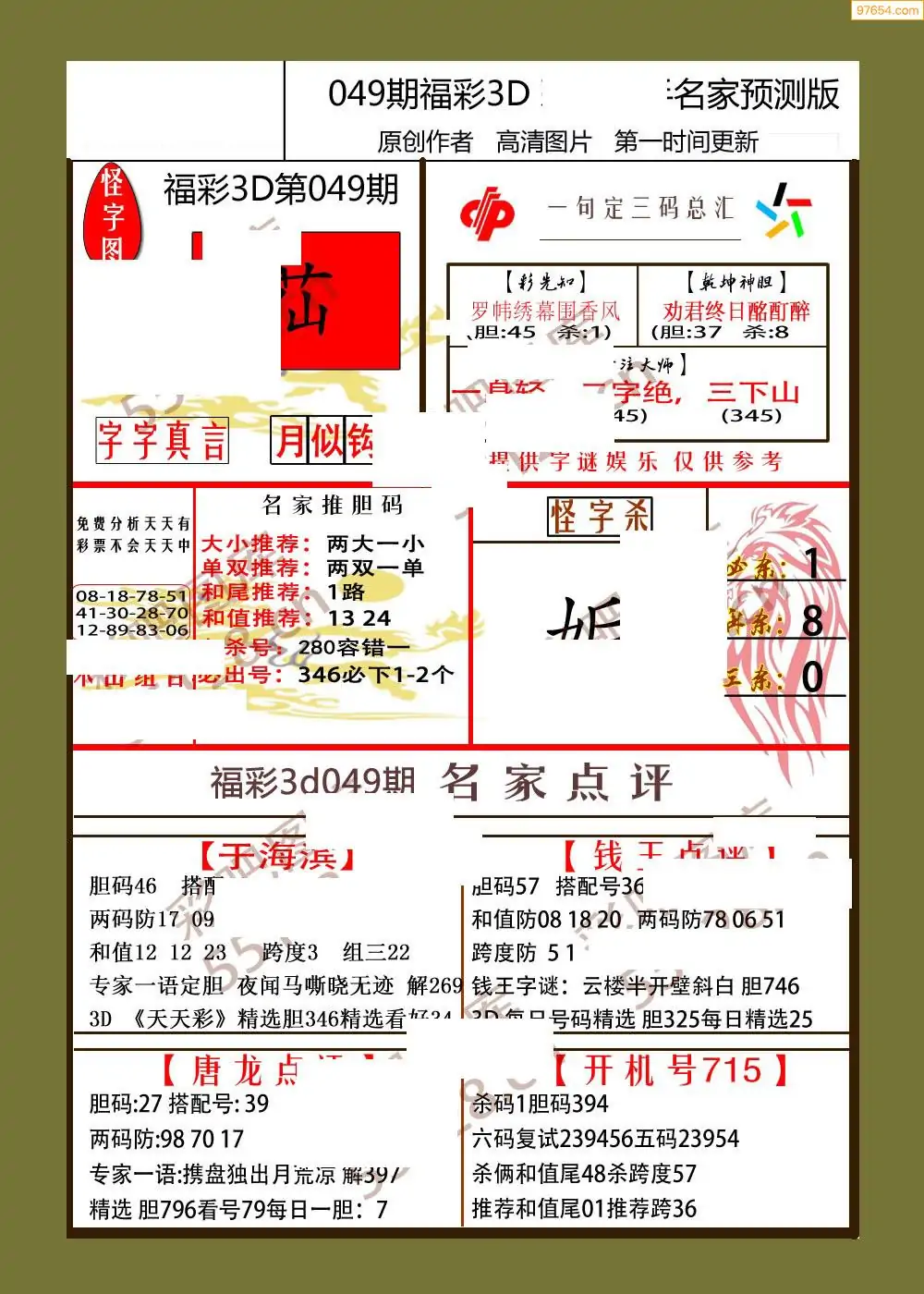 (3)2026049期3D预测总汇全图_福彩3d图谜字谜总汇
