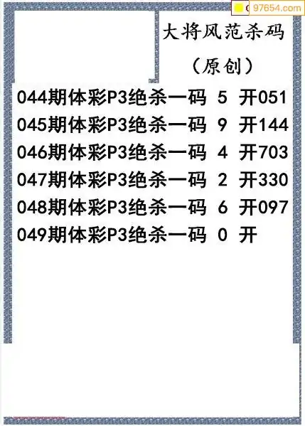 26年049期大将风范p3杀码体彩图谜