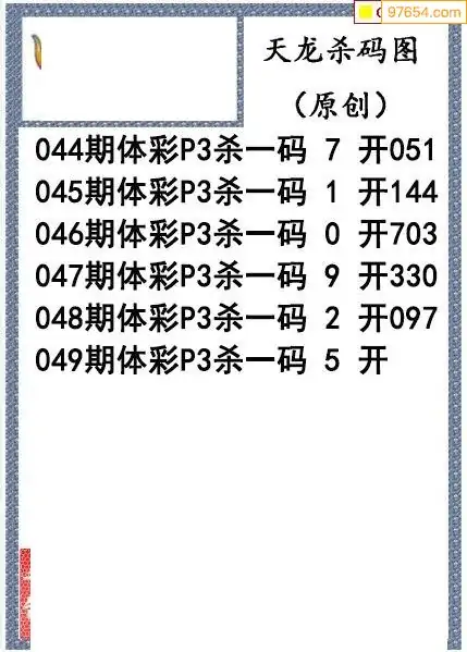 26年049期天龙体彩P3杀码图谜