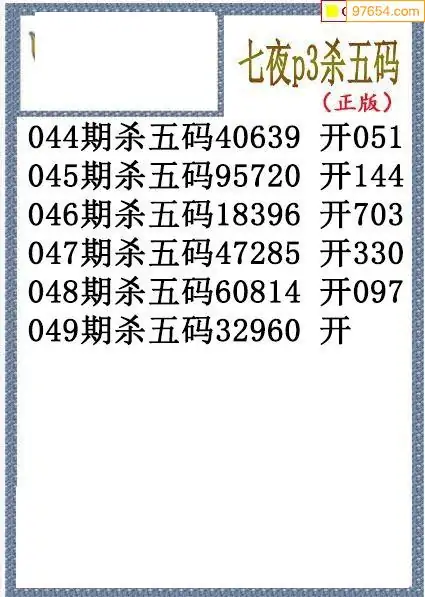 26年049期七夜今期排列3杀码图谜
