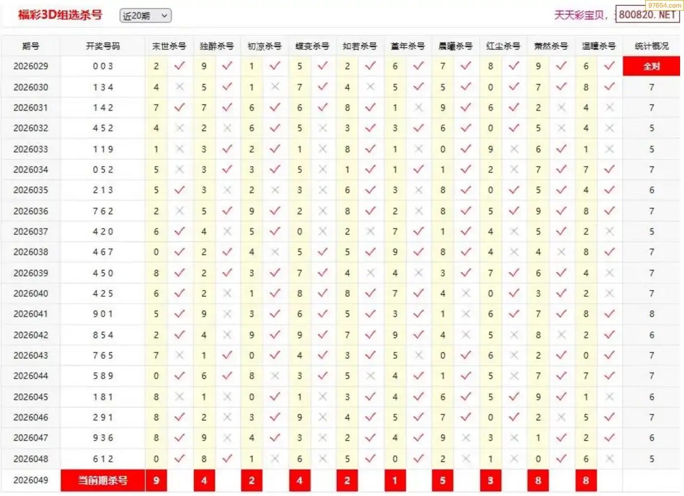 师姐26年049期3D准杀号 5连中