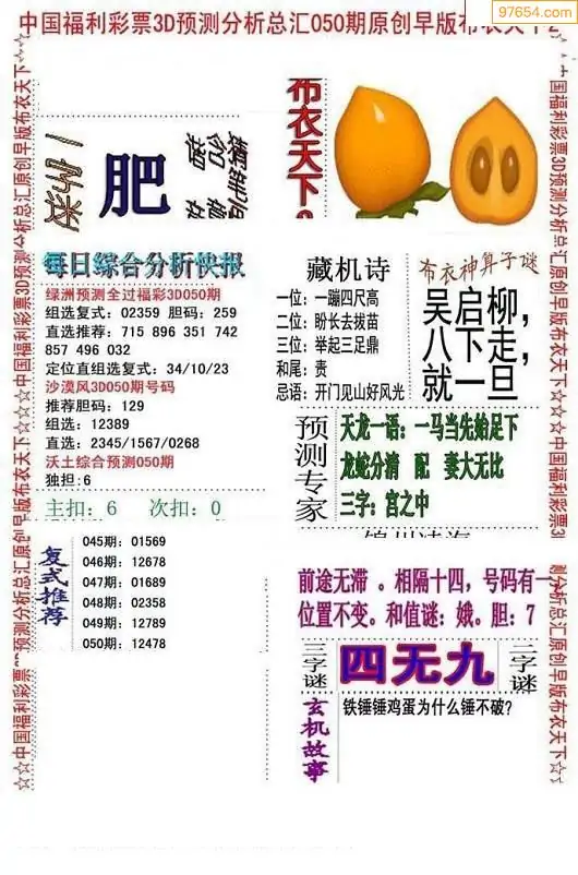 (3)2026049期3D预测总汇全图_福彩3d图谜字谜总汇