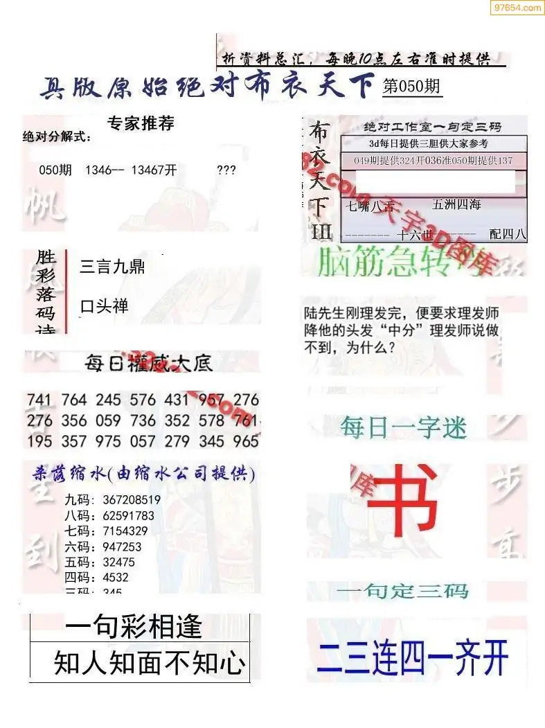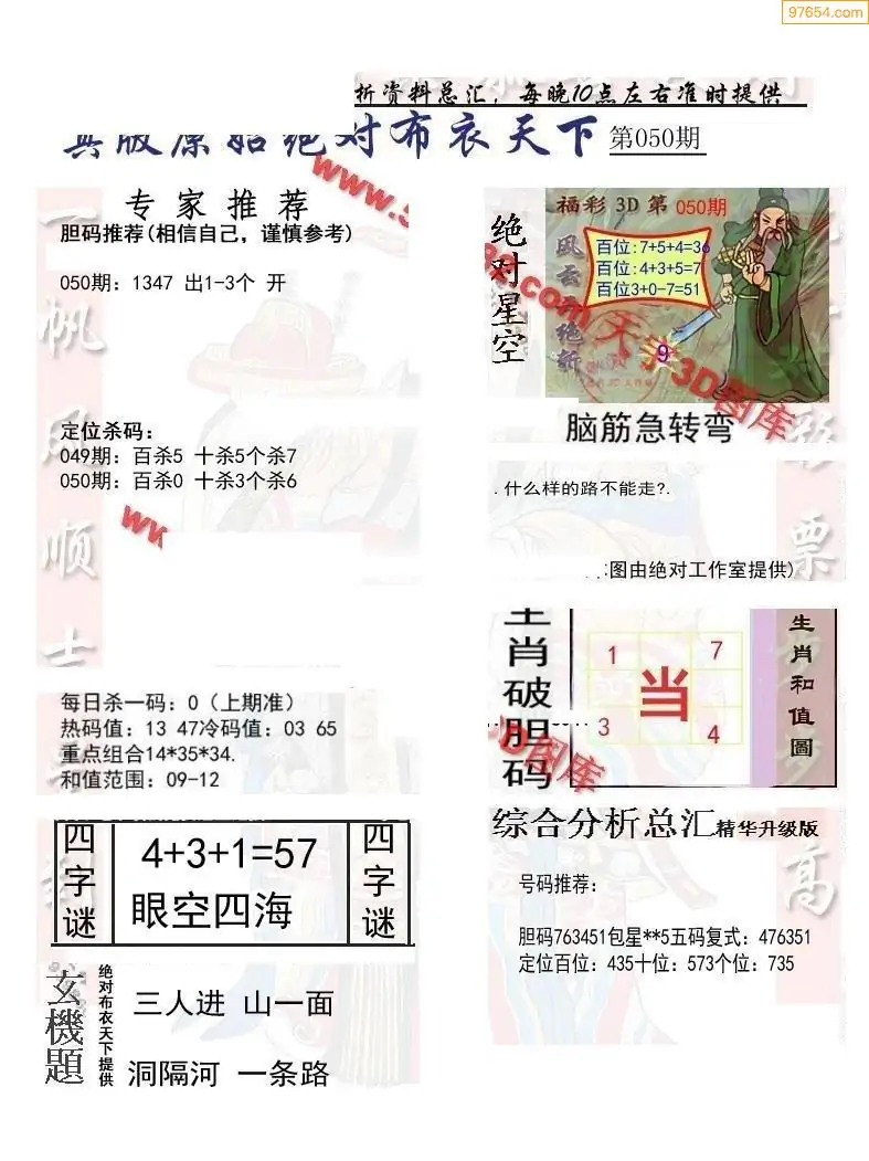 (2)26年050期本期3d图迷汇总_福彩3D图谜总汇图