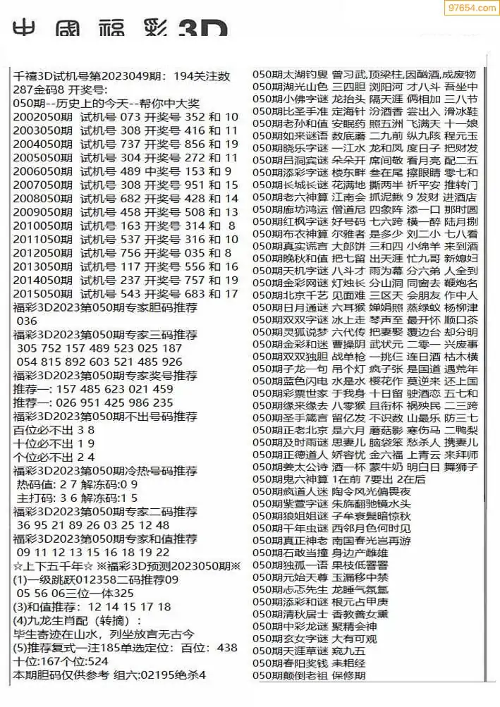 26年050期3D各板块资料整合汇总