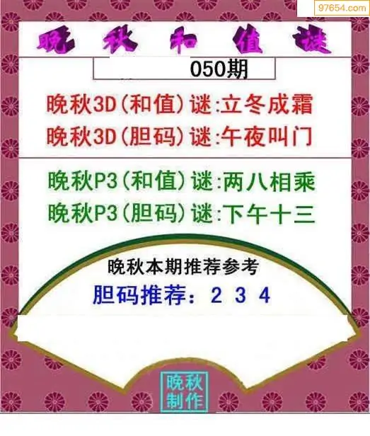 26050期晚秋和值谜胆码推荐