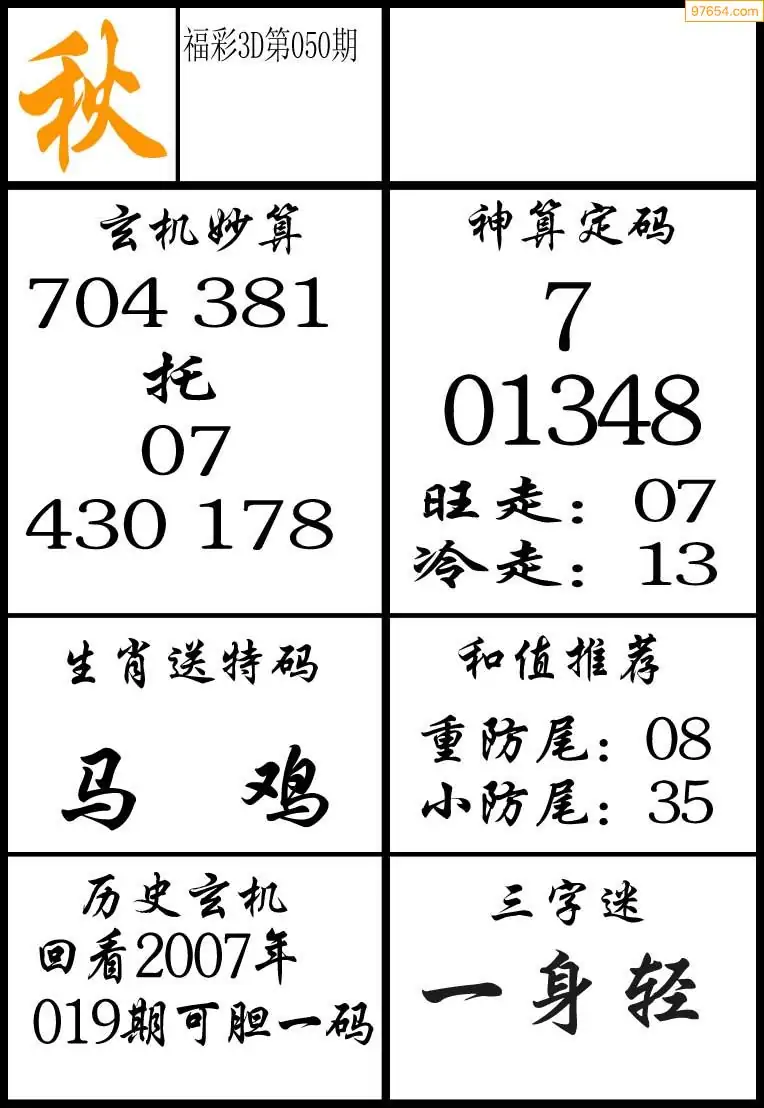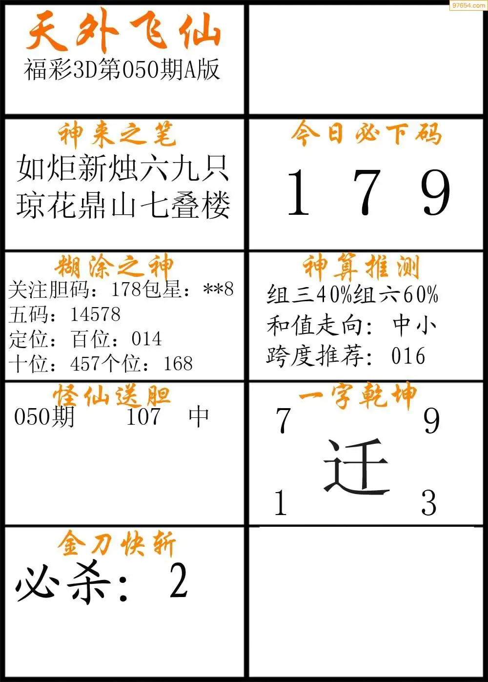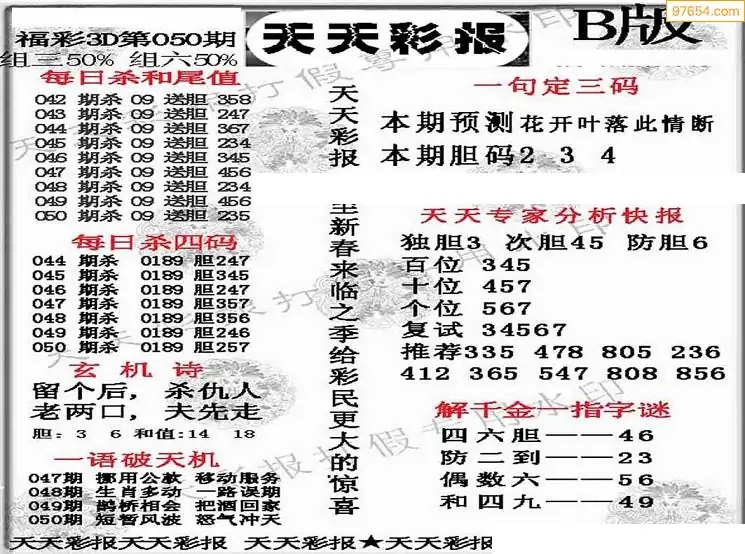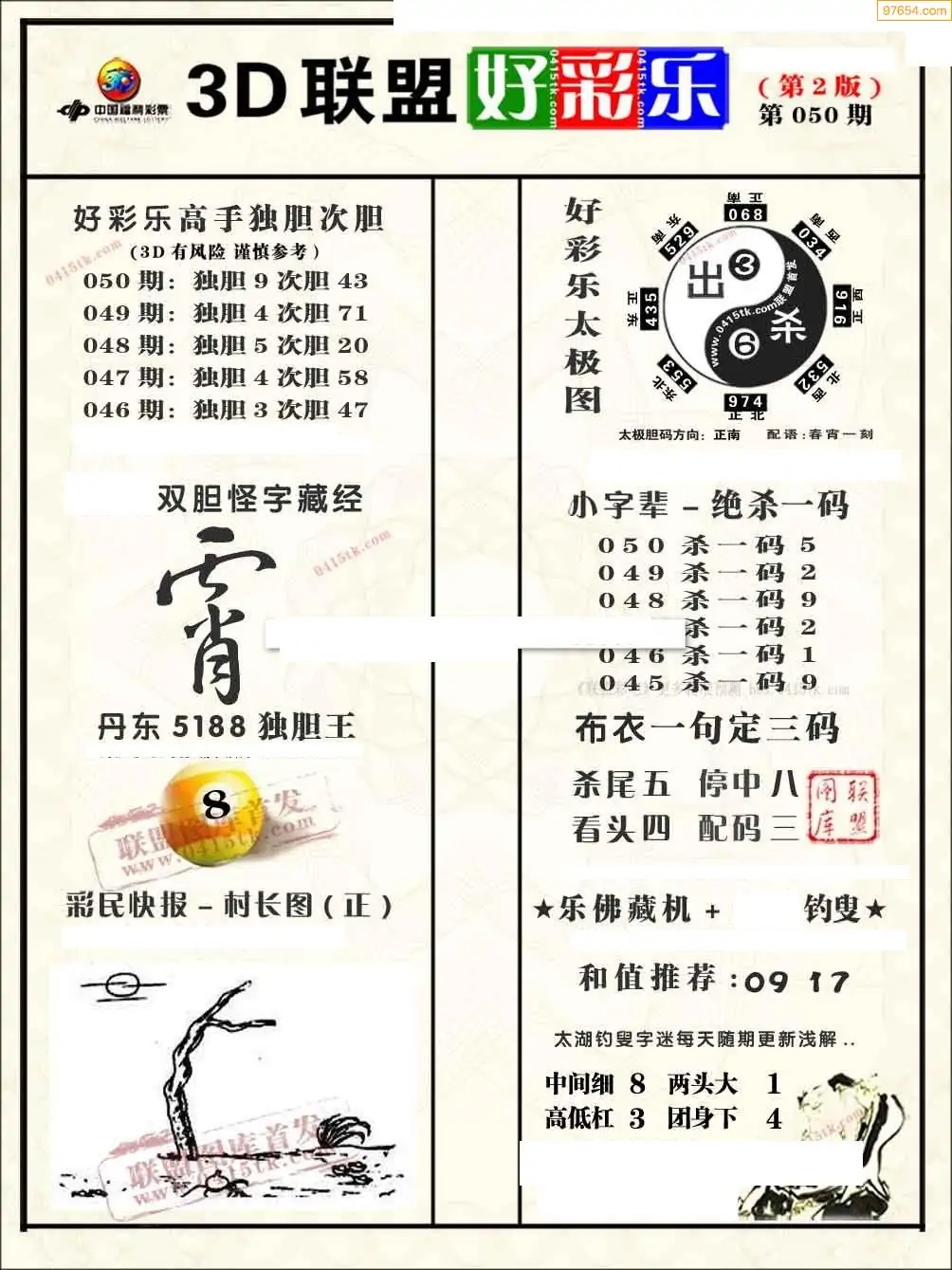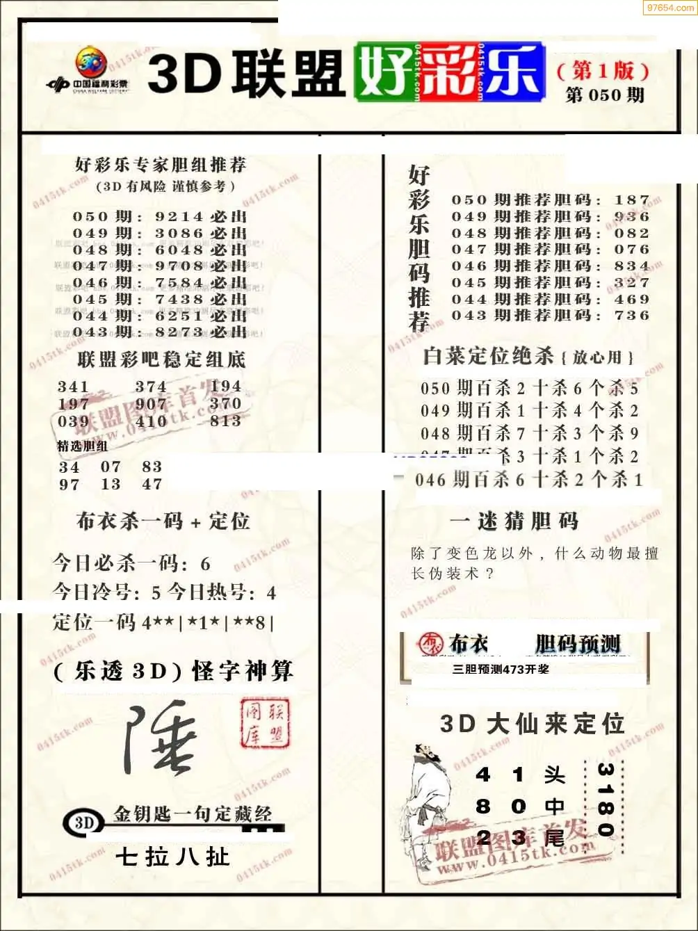福彩3D050期天牛彩吧套图整合总汇