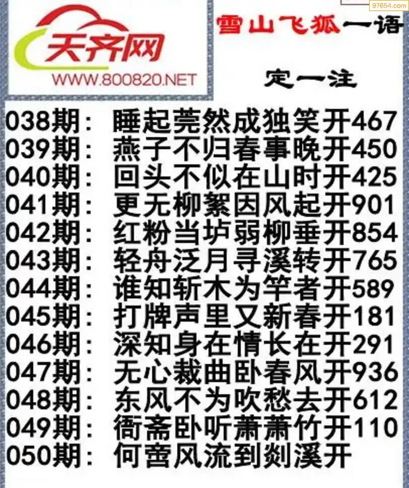 050期3D晚秋(和值)谜:立冬成霜 D:午夜叫门