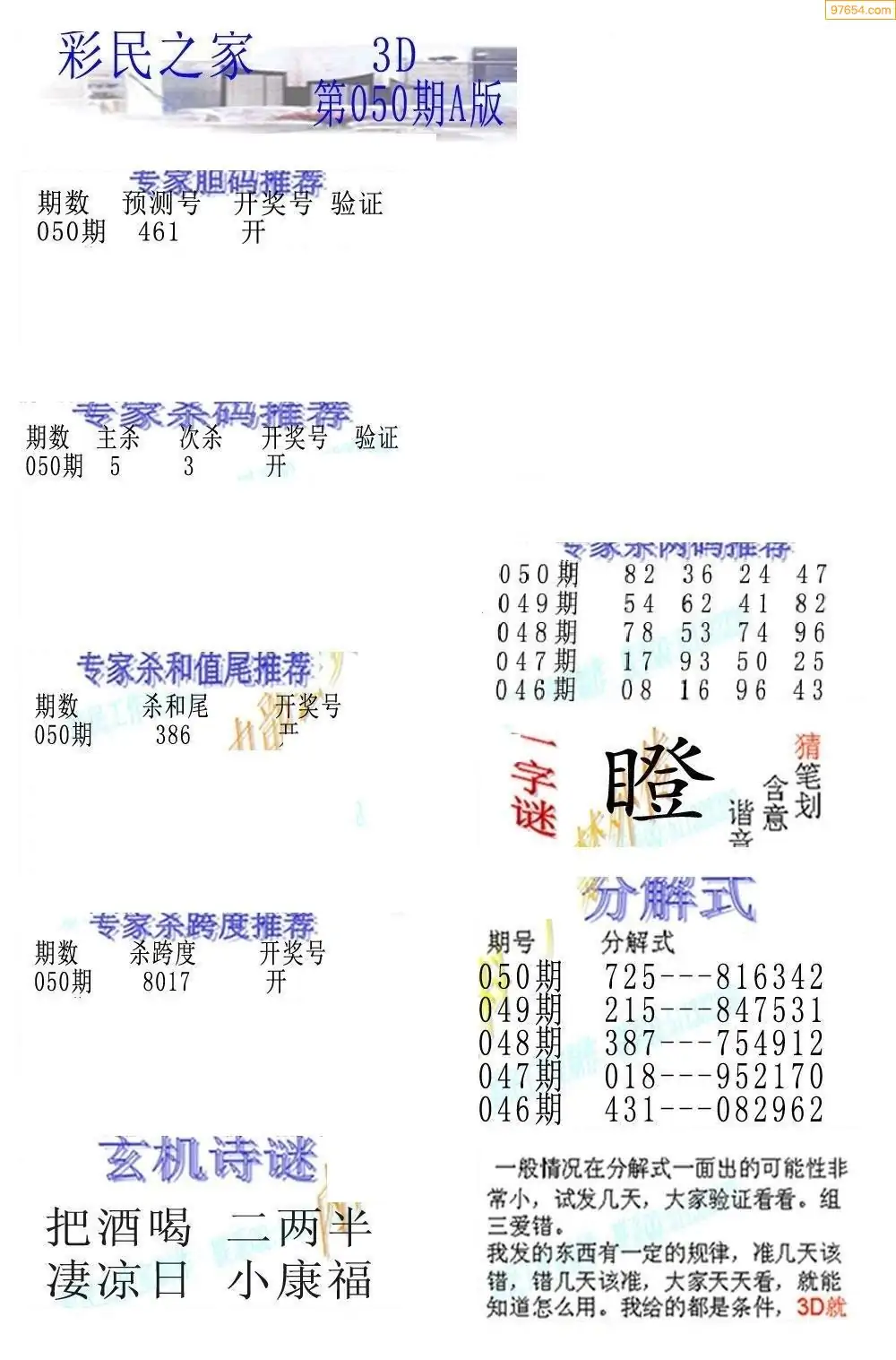 (3)2026050期3D预测总汇全图_福彩3d图谜字谜总汇