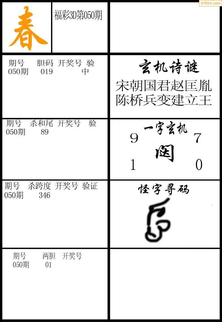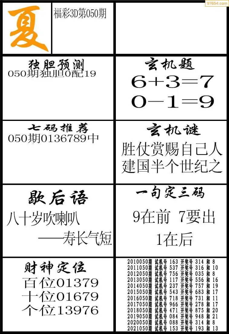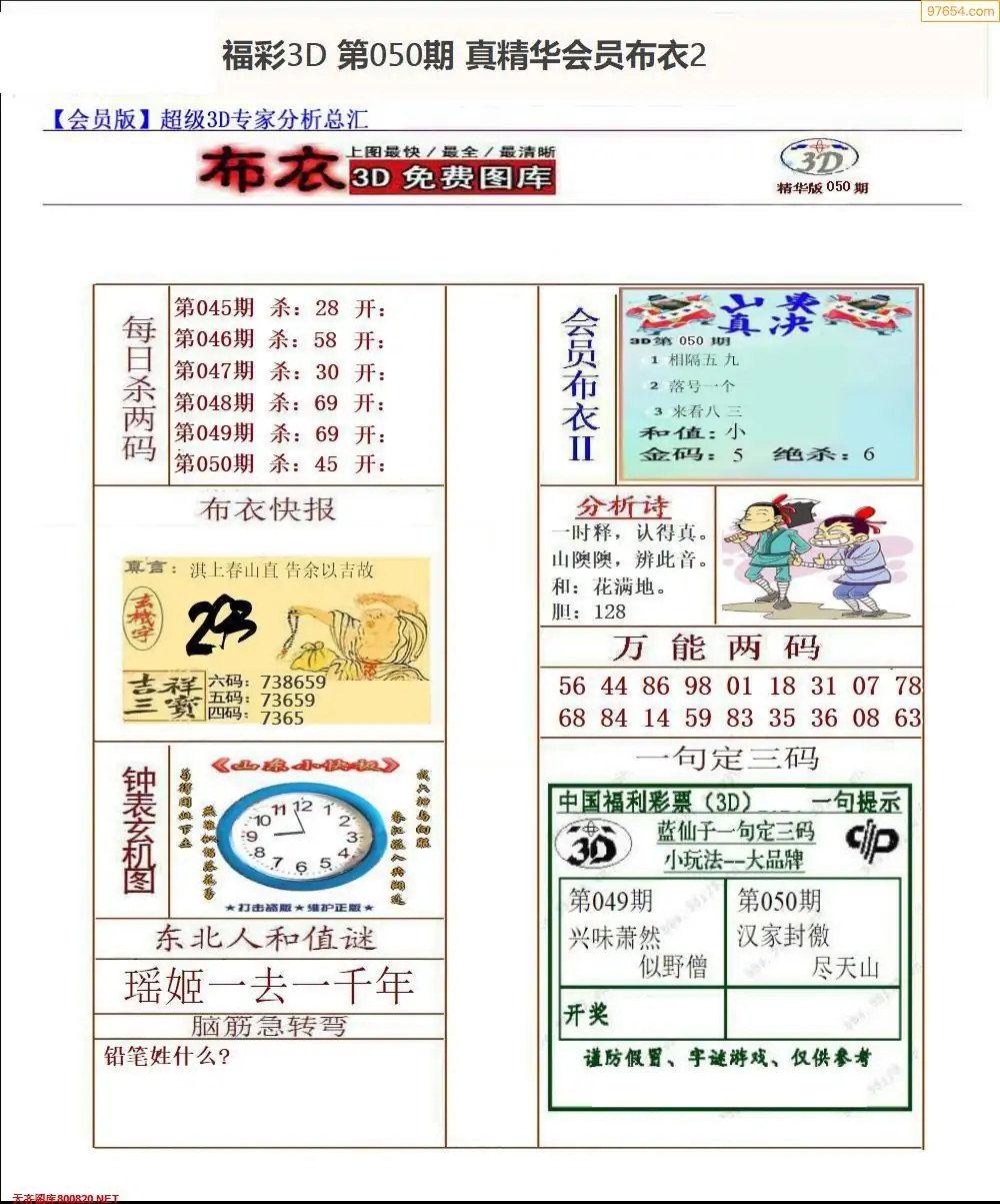(2)26年050期本期3d图迷汇总_福彩3D图谜总汇图