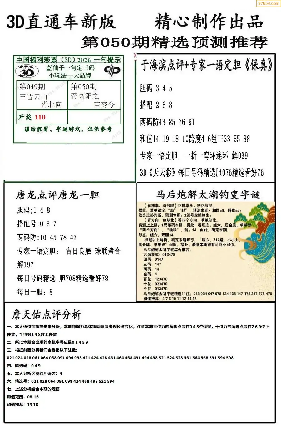 26年051期3D各板块资料整合汇总