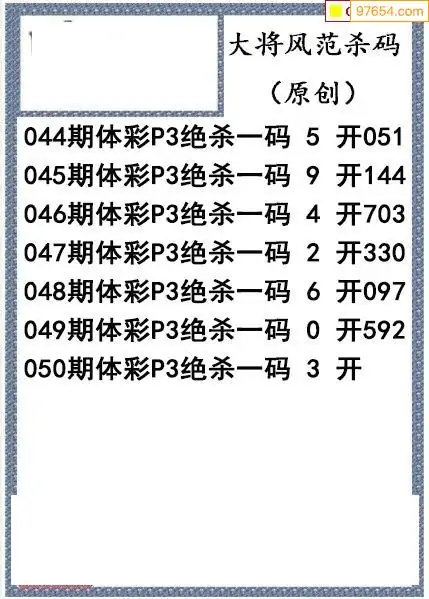 26年050期大将风范p3杀码体彩图谜