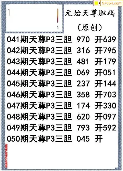 26050期元始天尊排列3胆码图