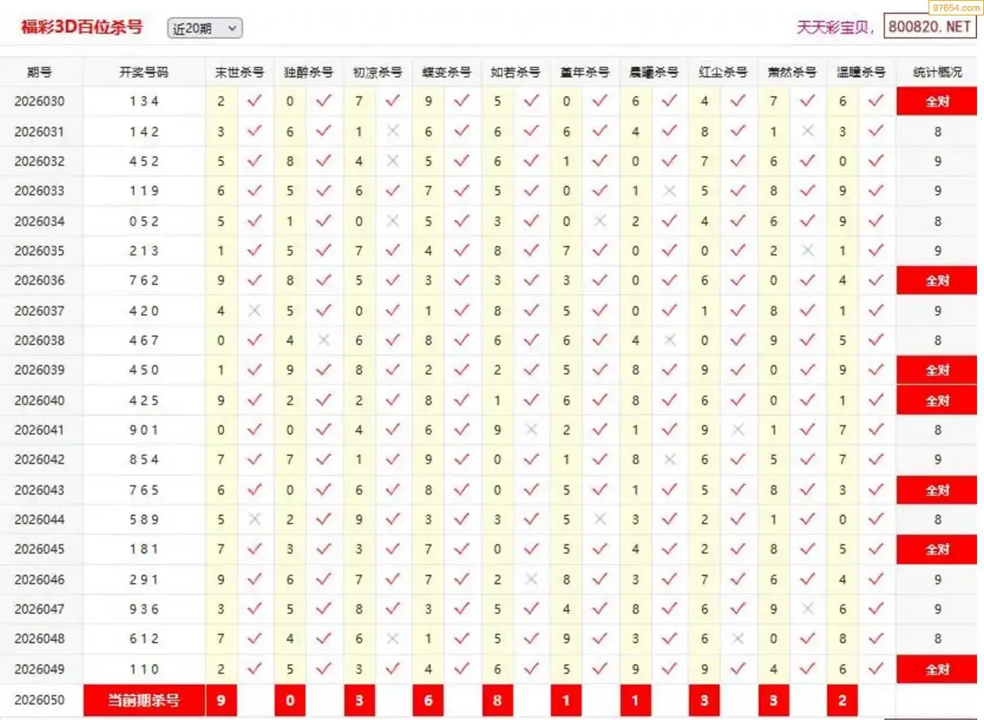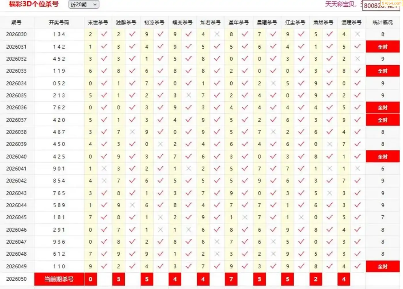 师姐26年050期3D准杀号 6连中