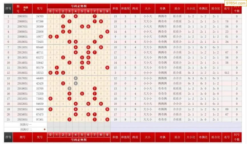 051期排列三历史号码对比图+数据走势分析