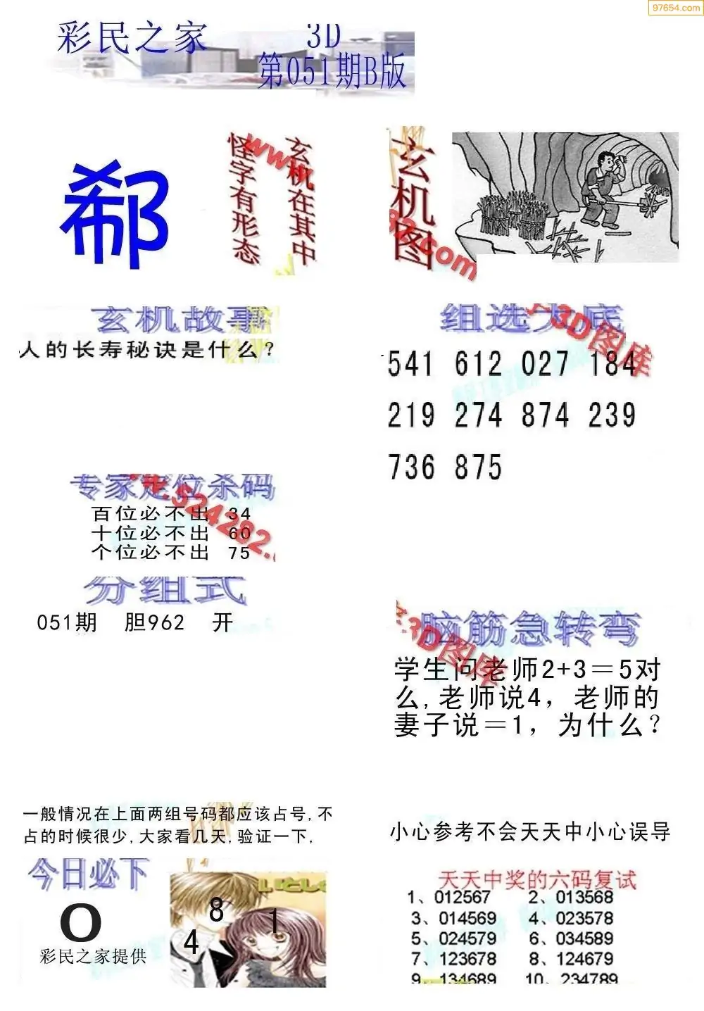 26051期3D彩民之家打印B版