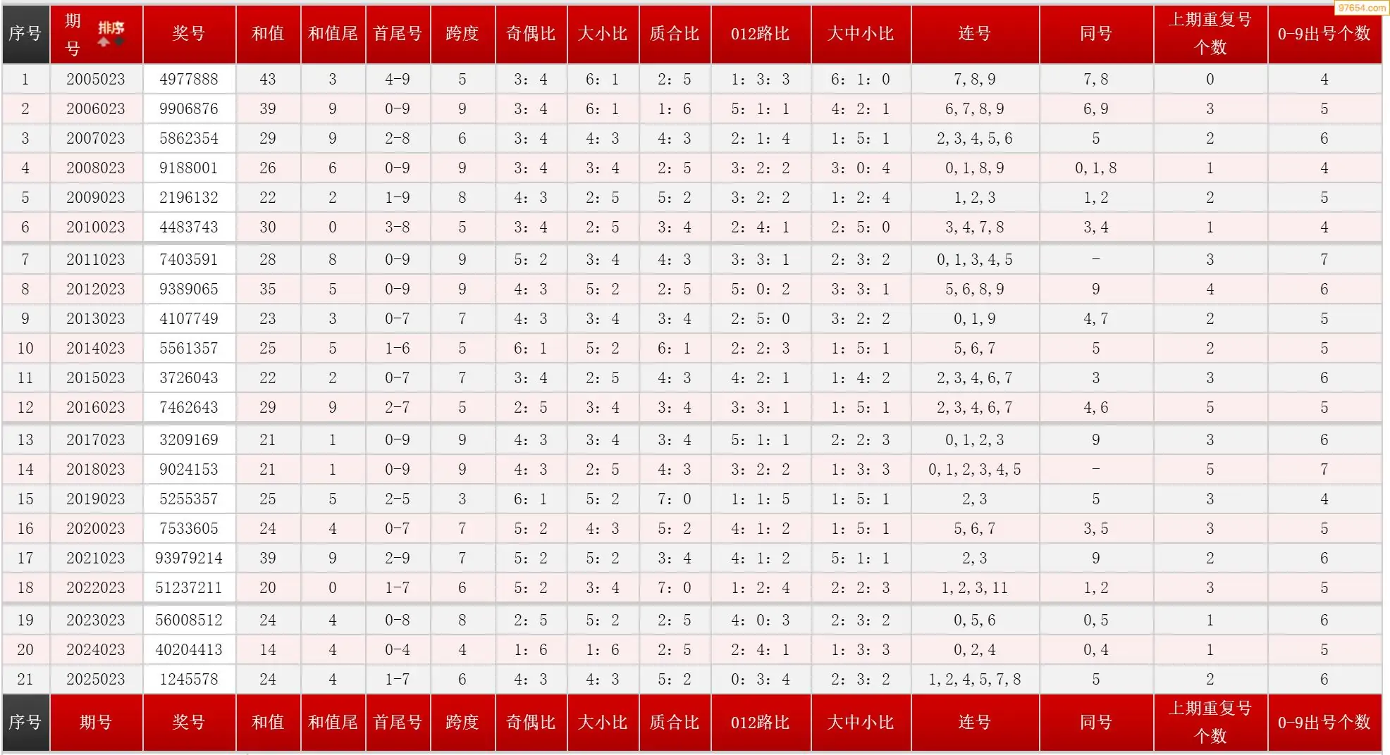 023期七星彩历史同期图表+走势图