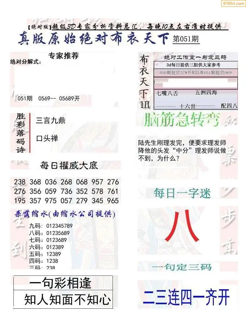 福彩051期3d真精华布衣+布衣早报(转载)