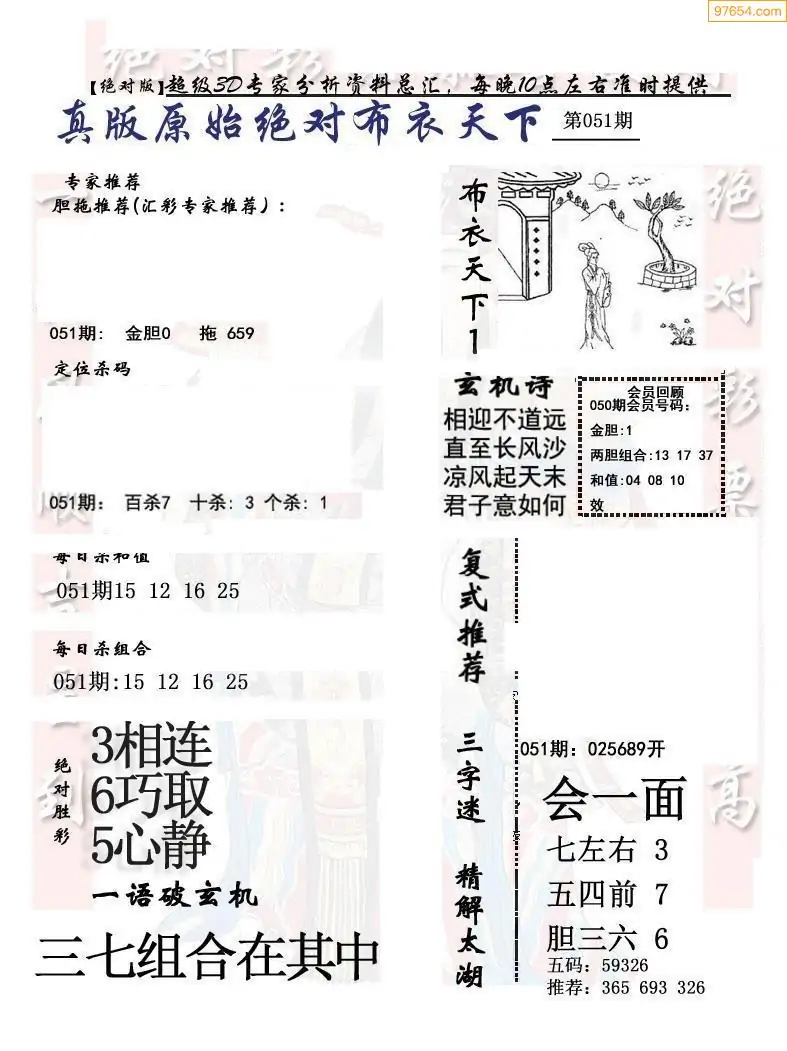 26051期早版布衣天下3D图迷