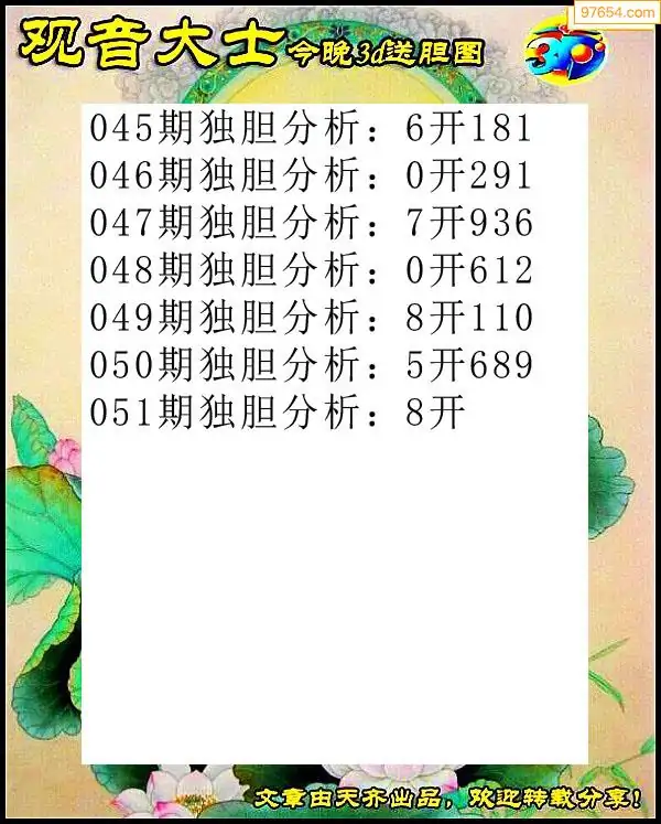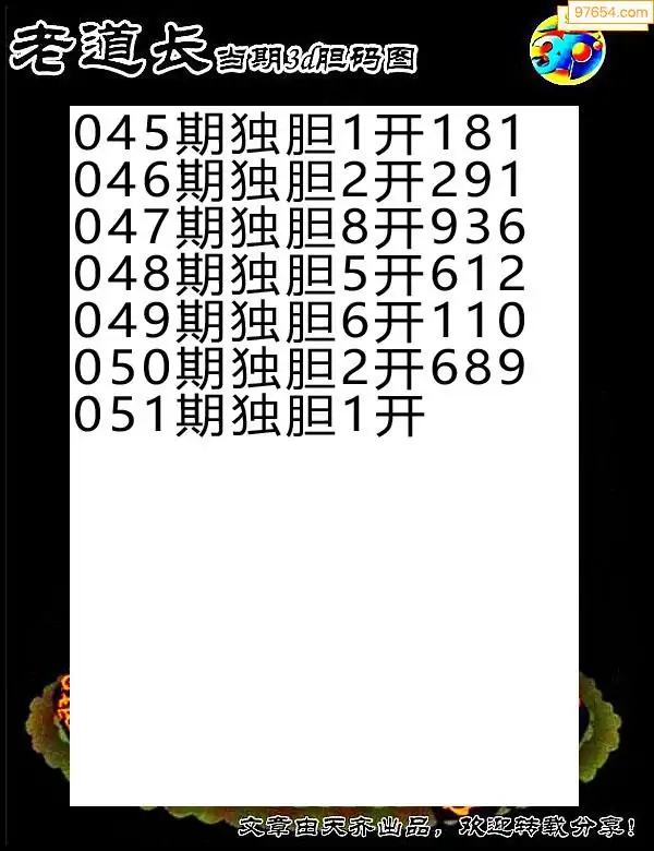 天齐网3d26年051期胆码图 胆:06