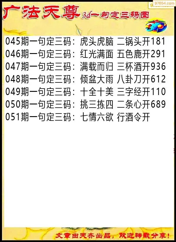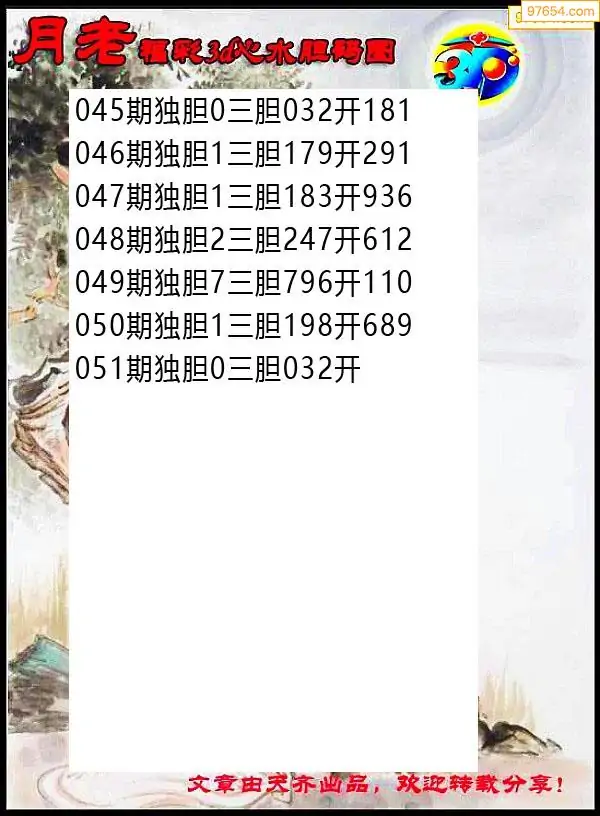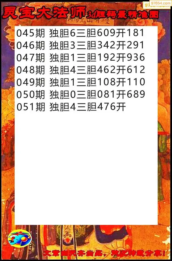 051期97654本站收集胆码出号预测