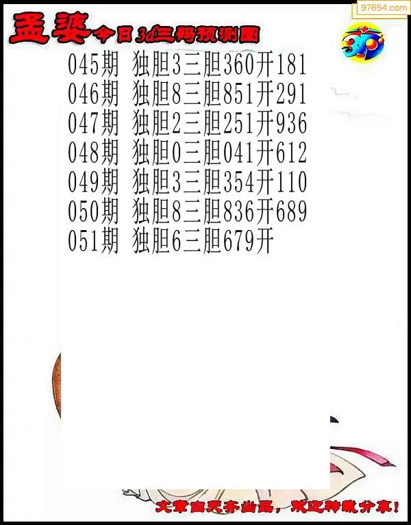 26051期杨麻子_福彩胆码计算方法