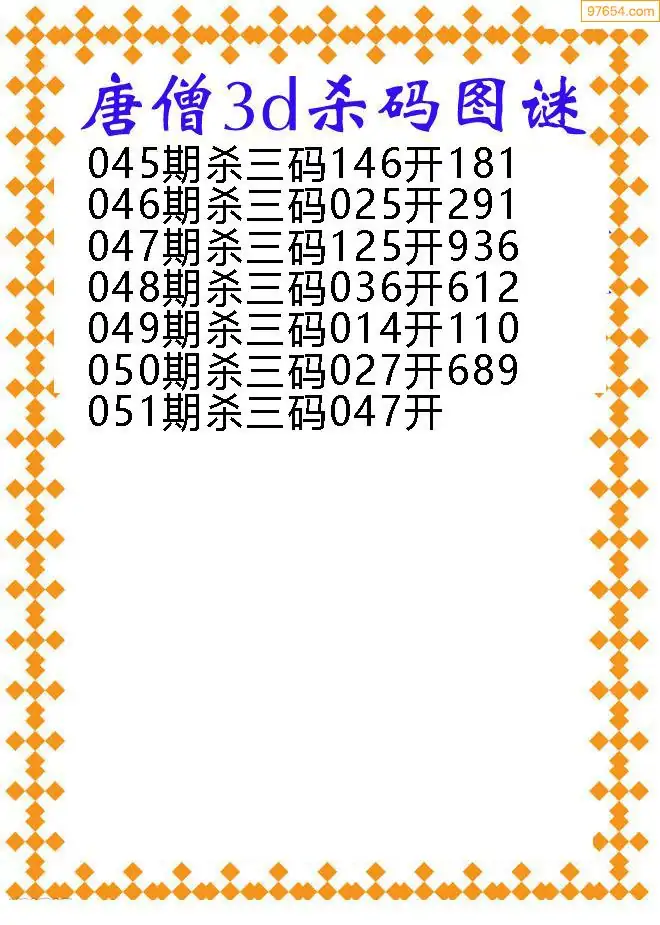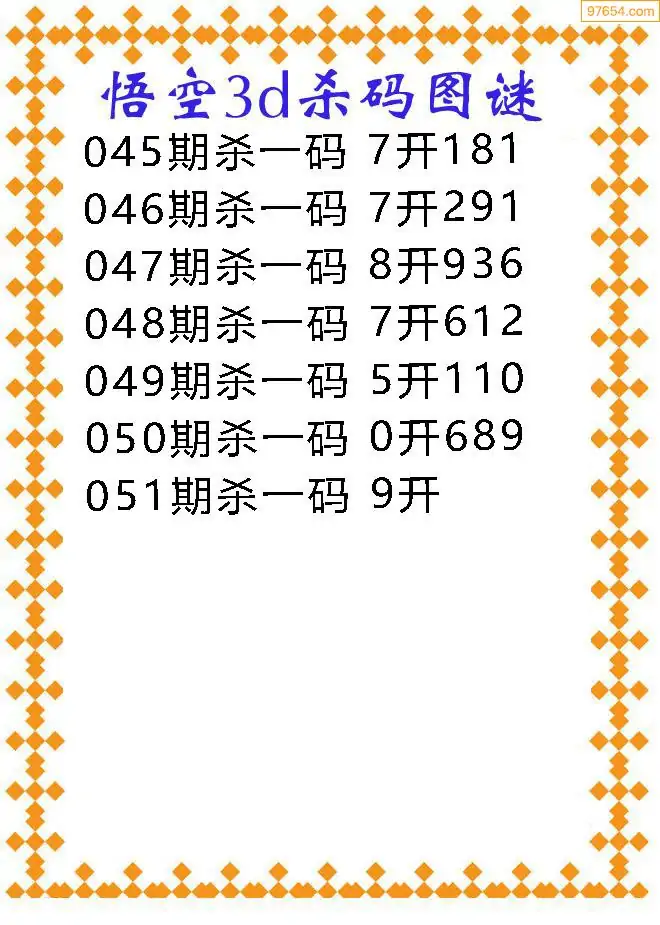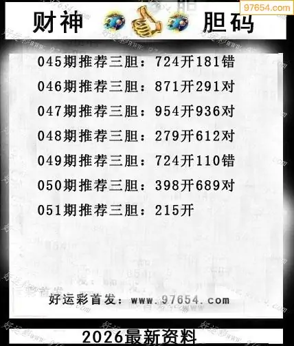 051期97654本站收集胆码出号预测