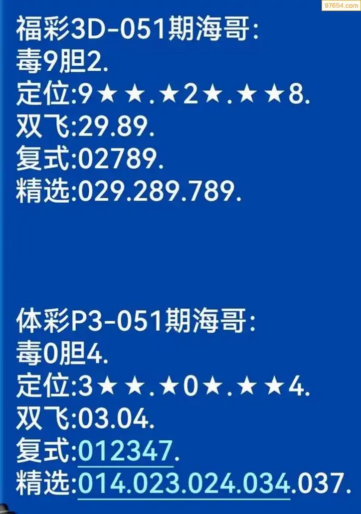 海哥福彩051期3d今日双胆