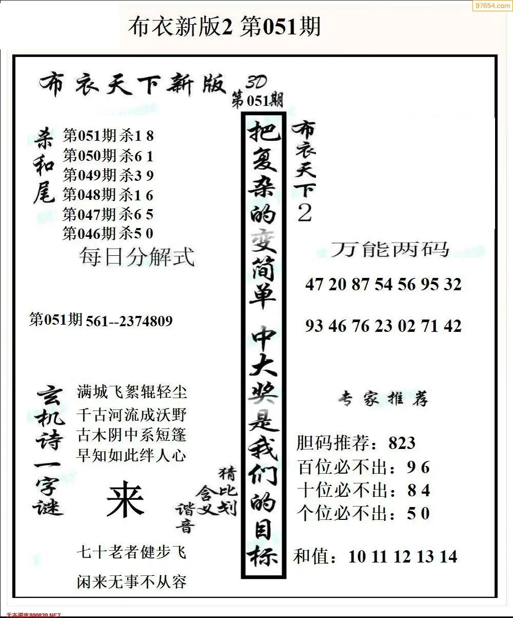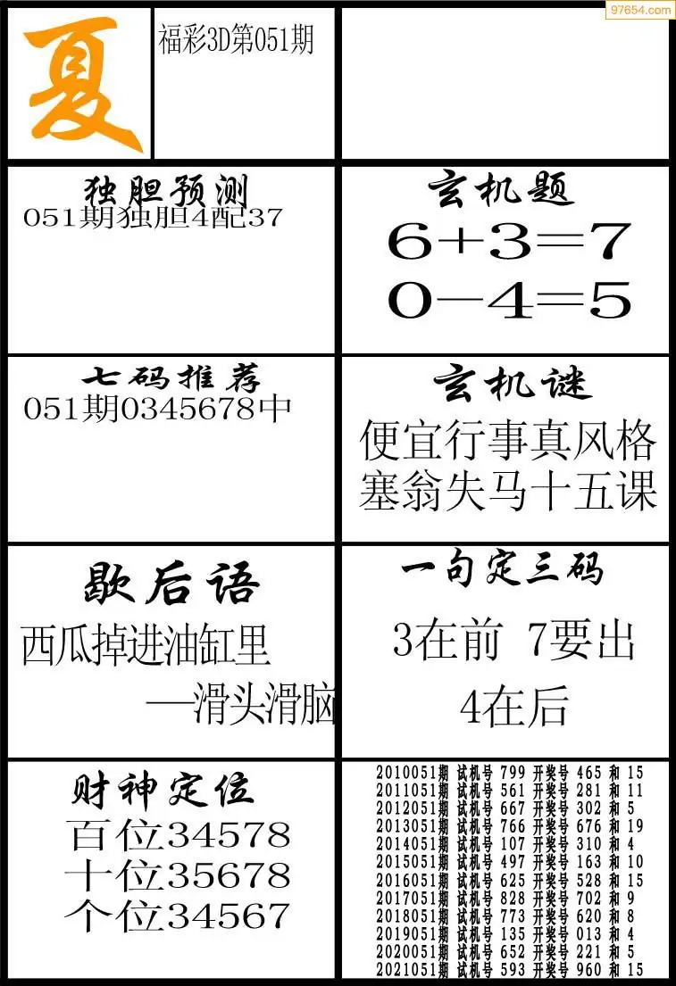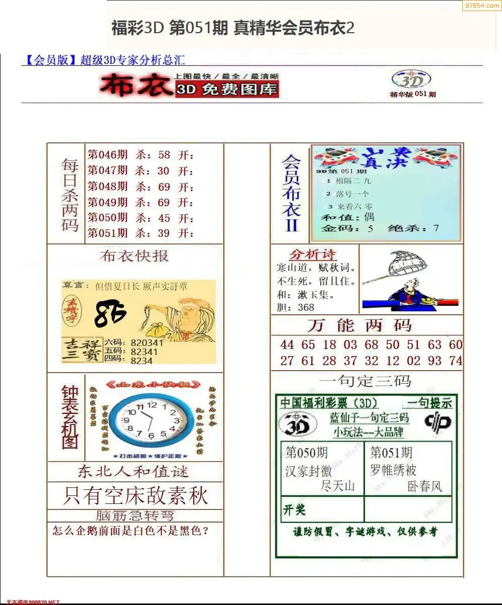 (2)26年051期本期3d图迷汇总_福彩3D图谜总汇图