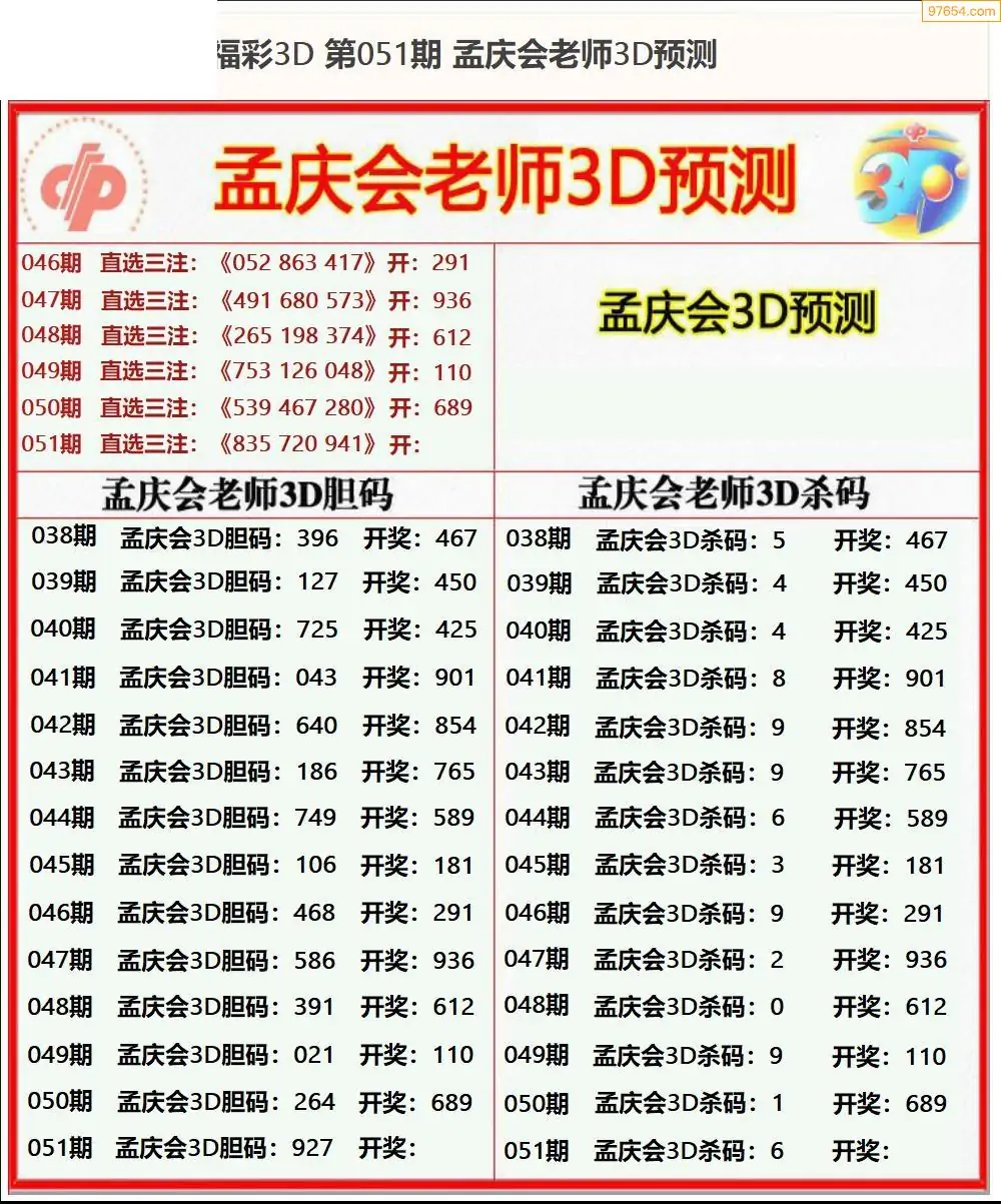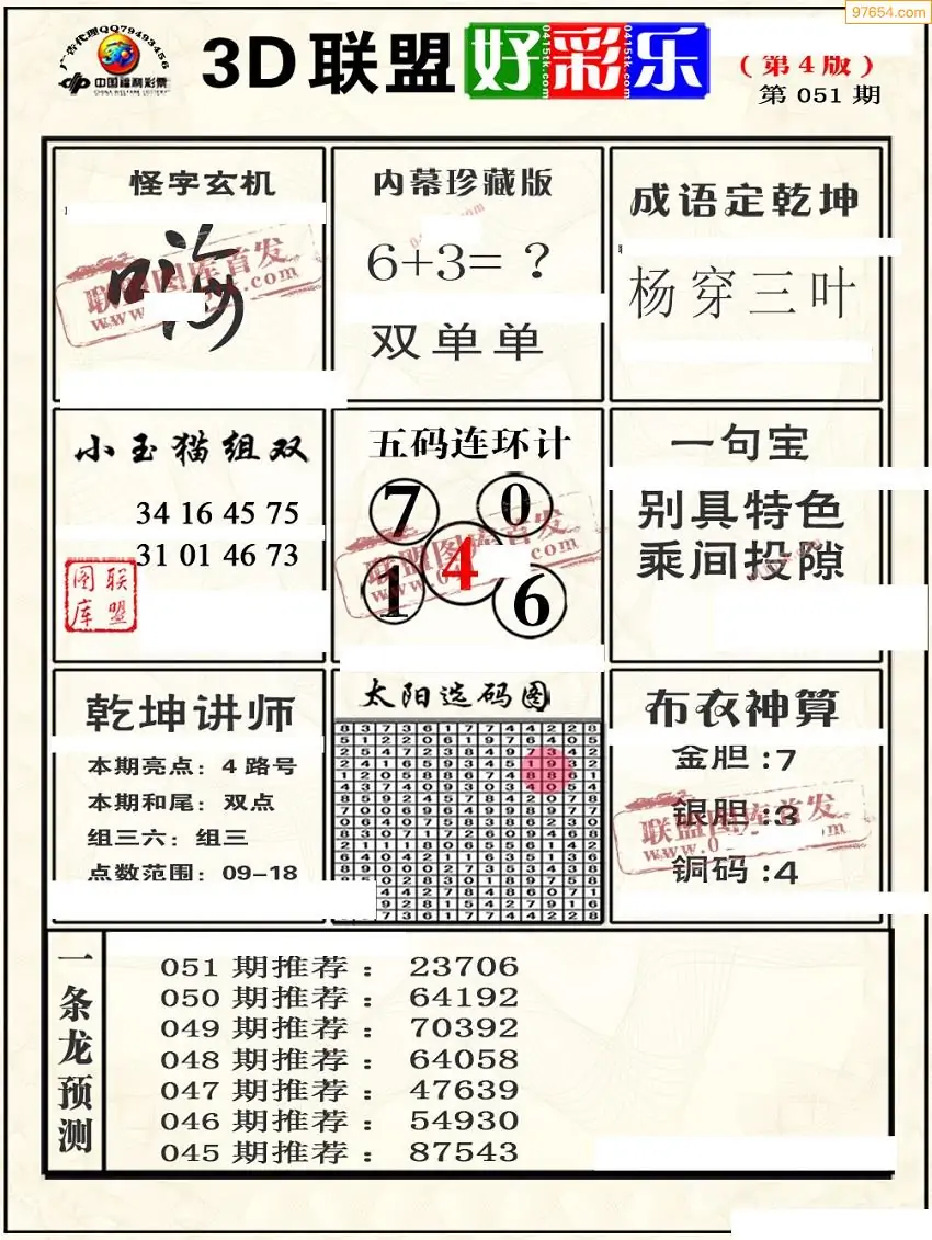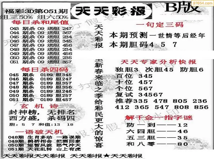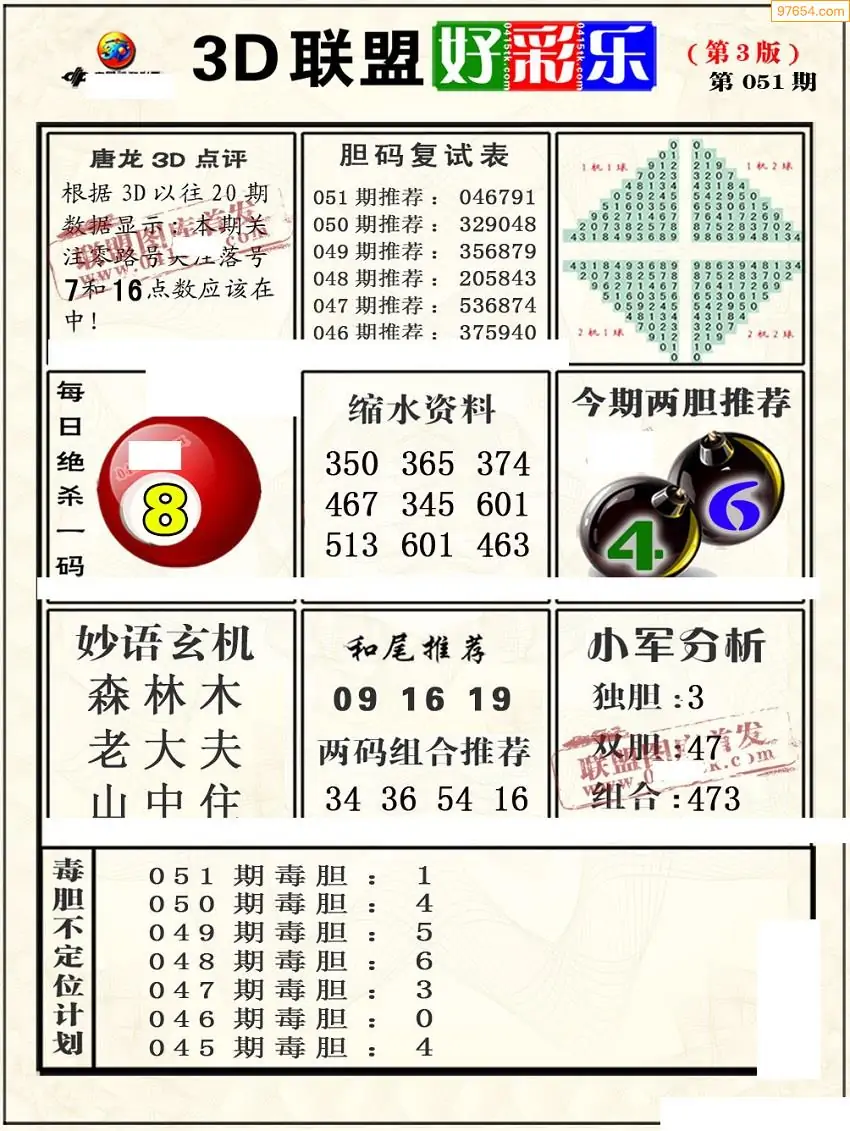 (8)26年051期今日3d各类彩报汇总