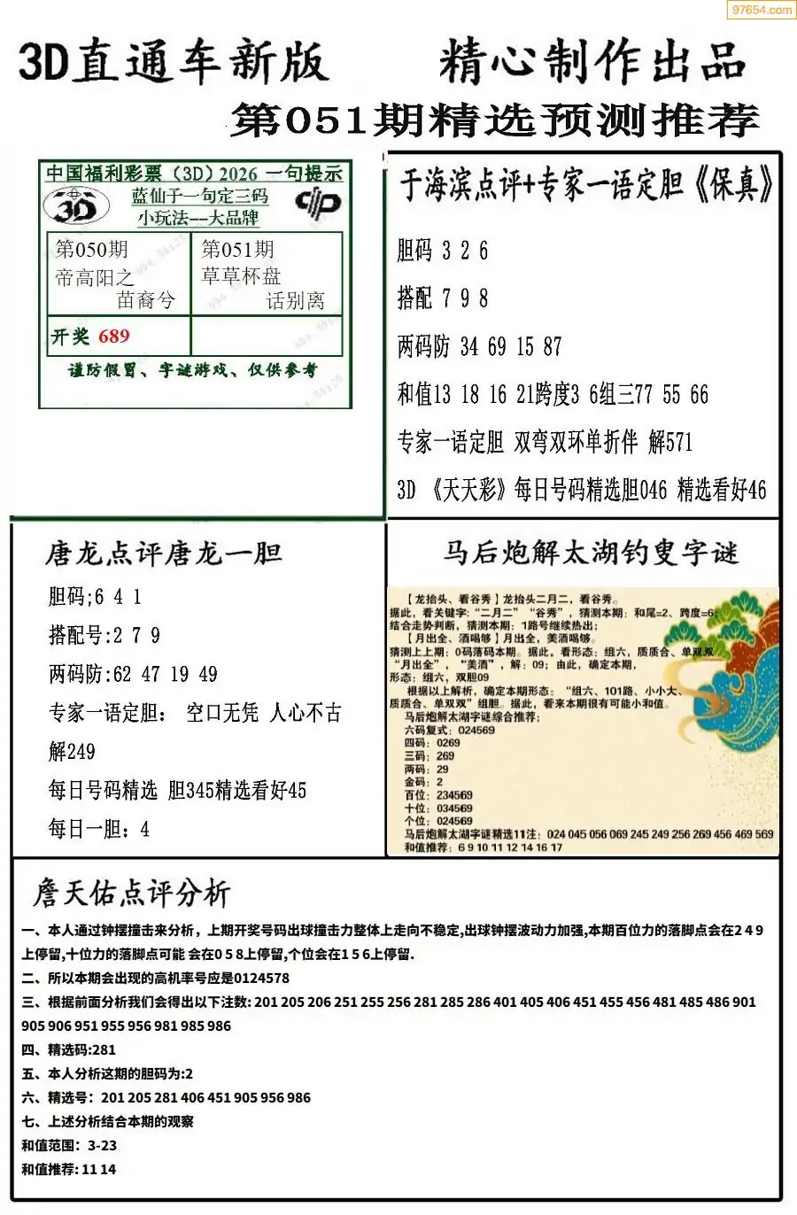26年051期3D各板块资料整合汇总