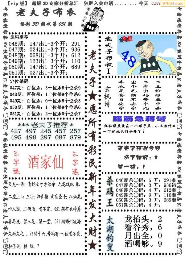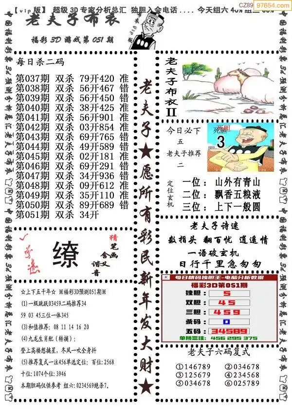 26年051期3d选号彩报图谜画谜