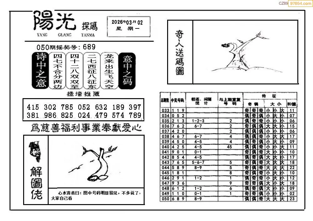 26051期福彩3D阳光探码图