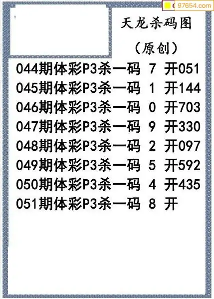 26年051期天龙体彩P3杀码图谜