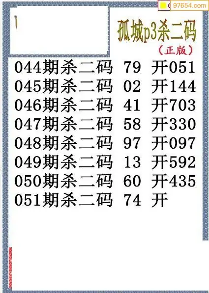 26年051期孤城本期杀码排3图谜