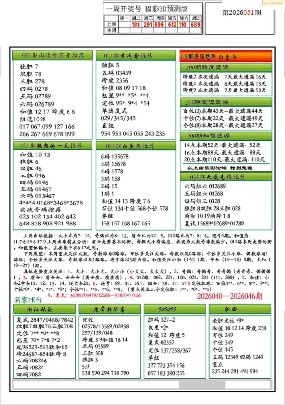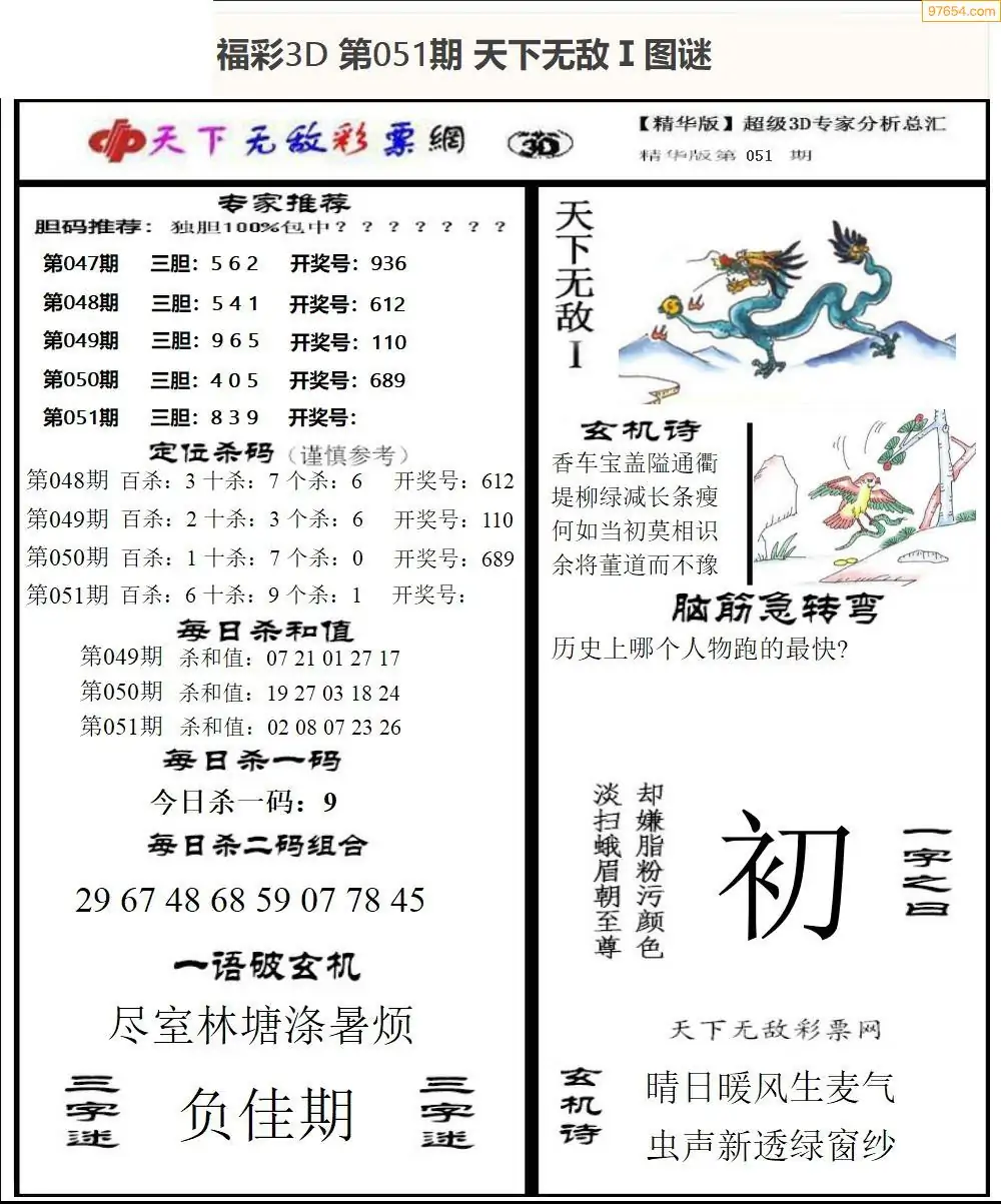 (9)26年051期当期全站杀号定胆图