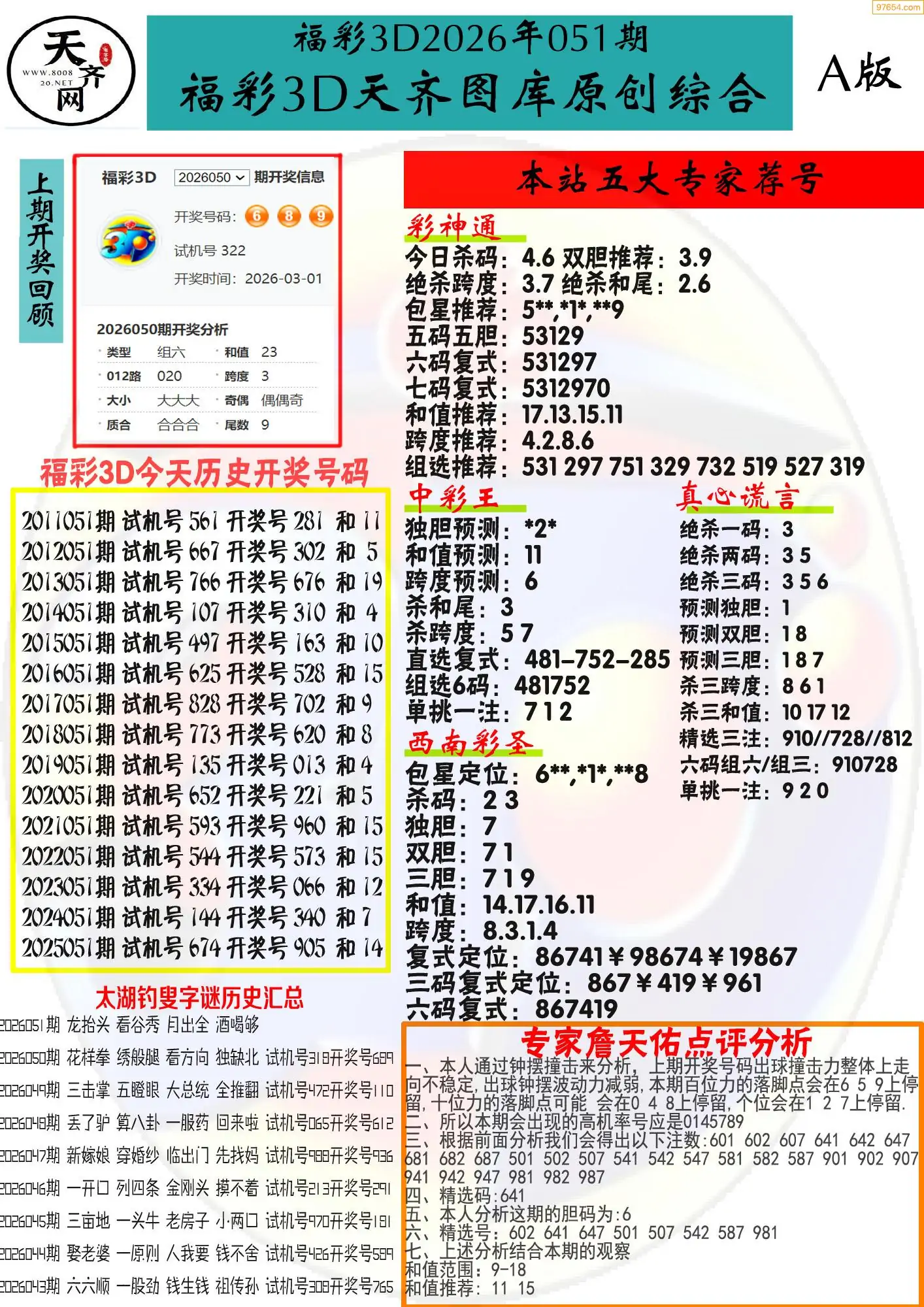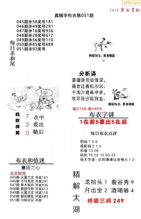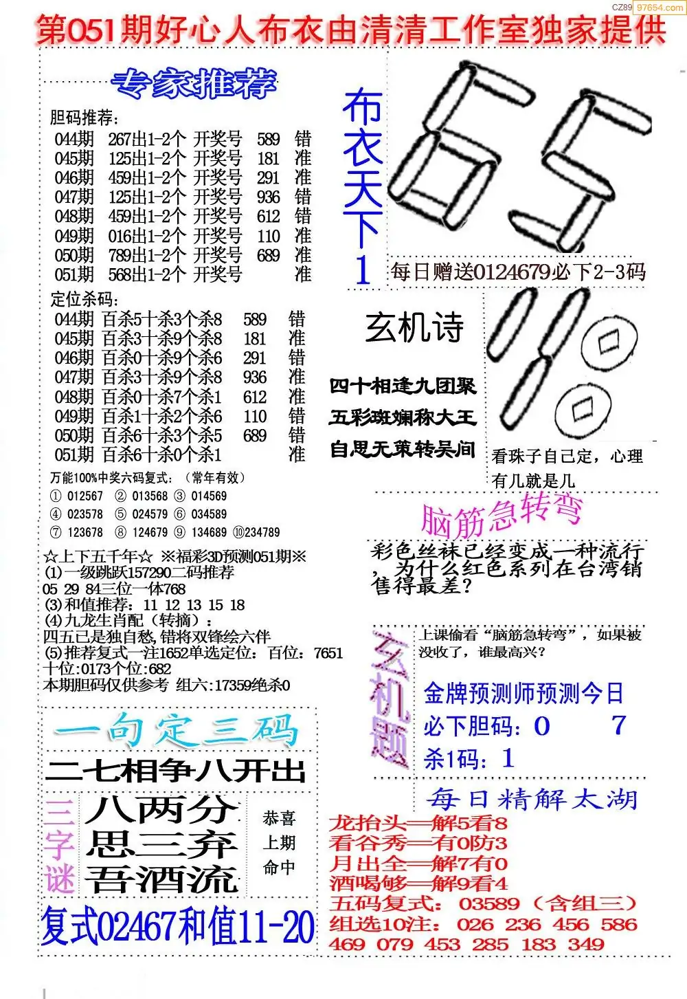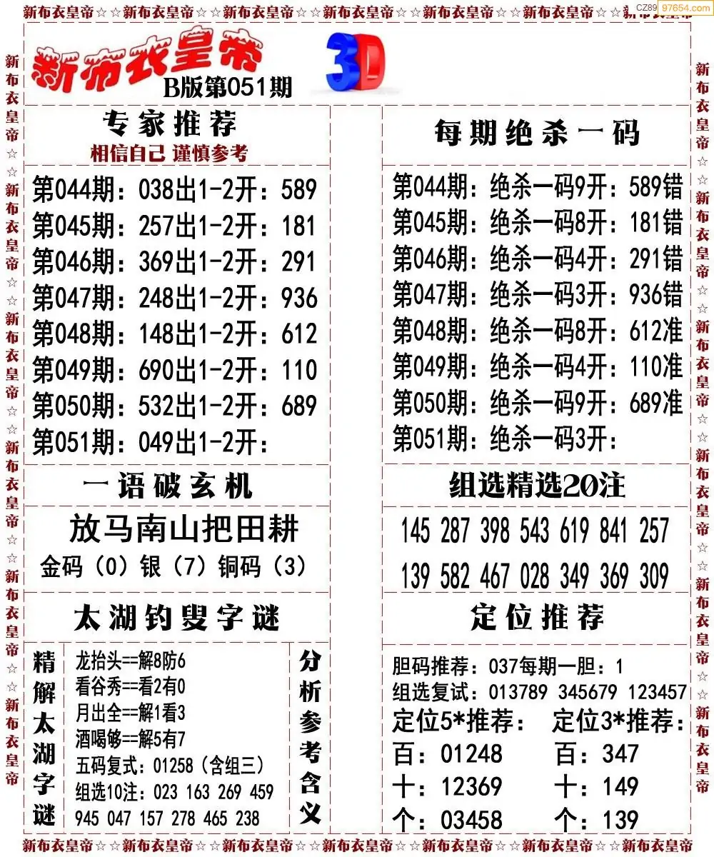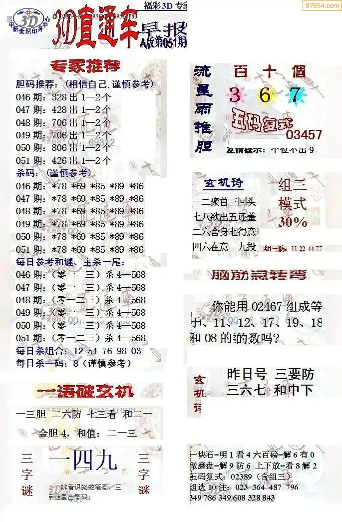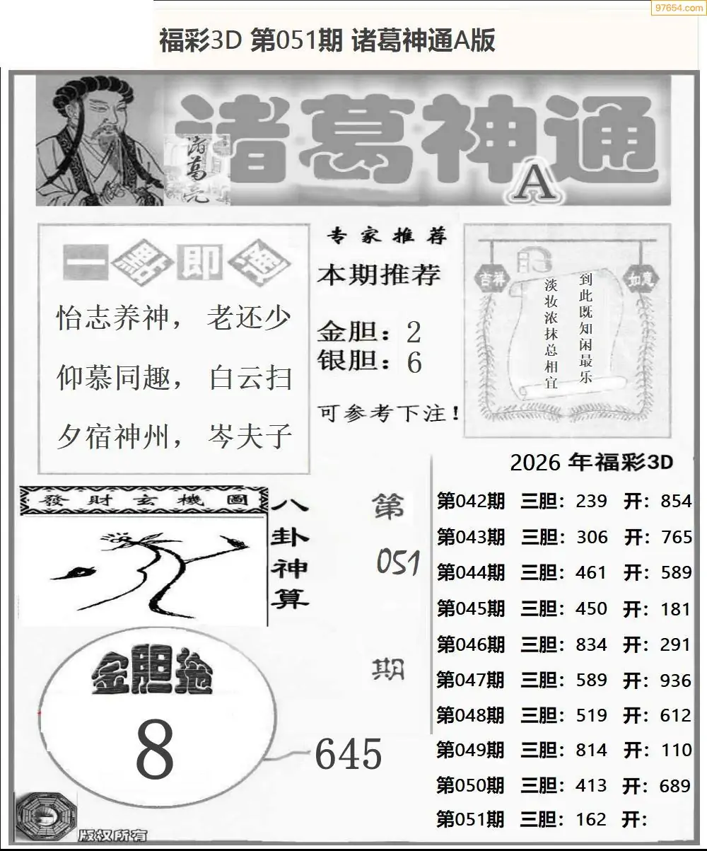 (8)26年051期今日3d各类彩报汇总