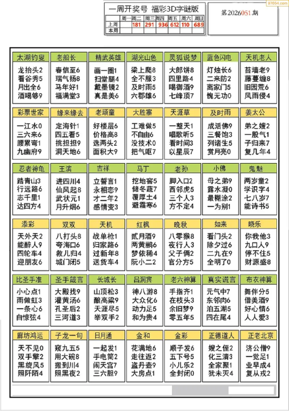 (5)26年051期福彩字谜图谜总汇