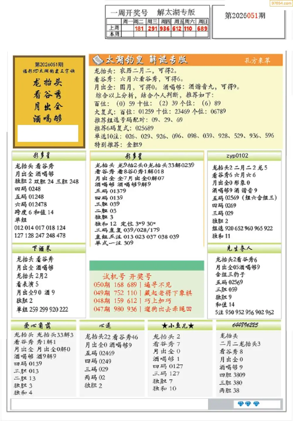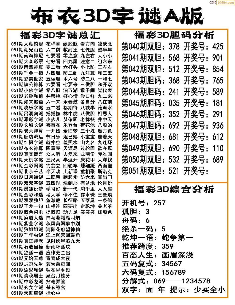 (2)26年051期本期3d图迷汇总_福彩3D图谜总汇图