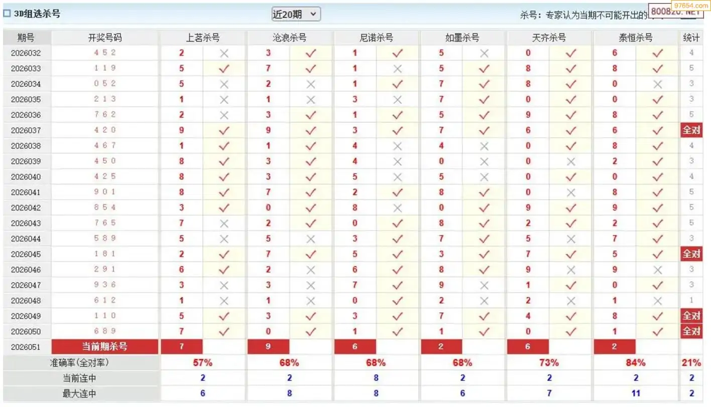 师姐26年051期3D准杀号 7连中