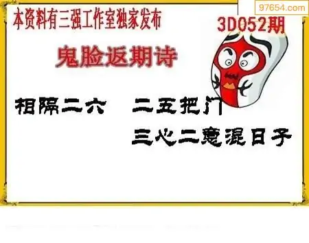 福彩3D26052期蓝仙子一句定三码图谜