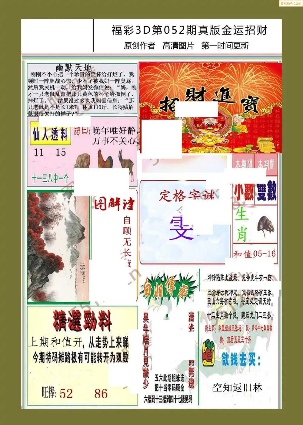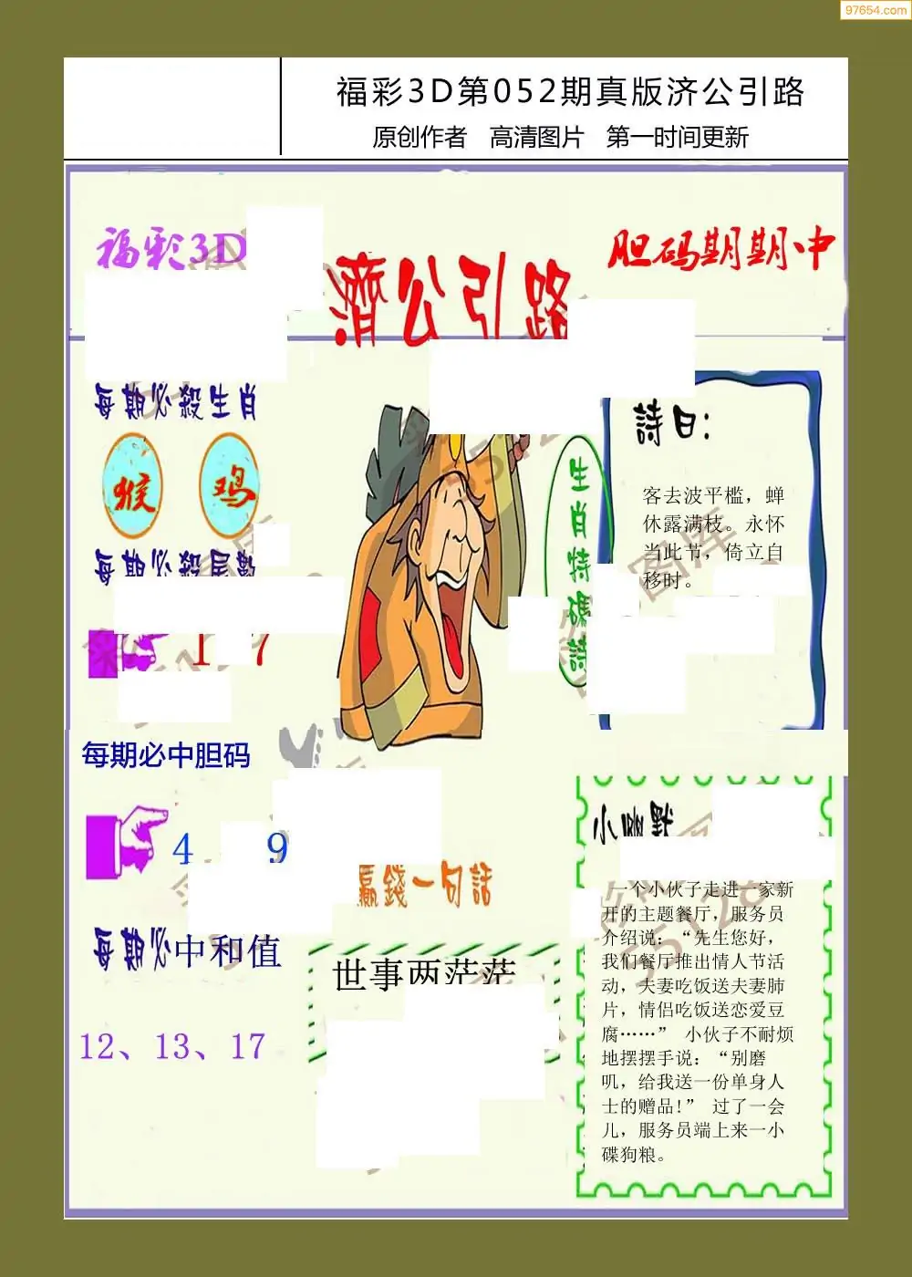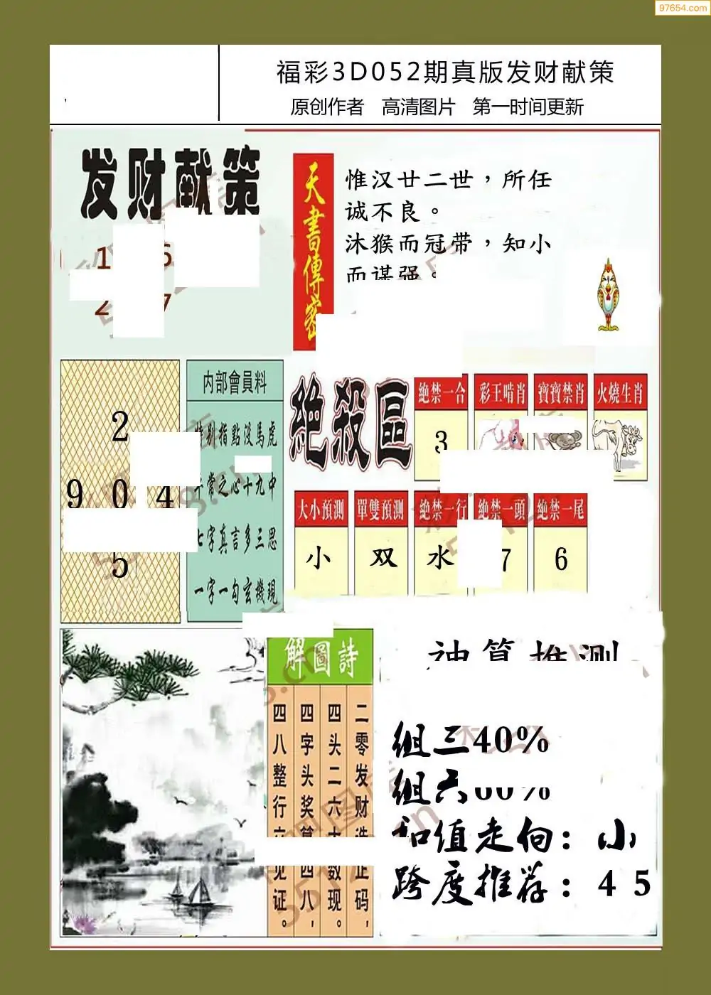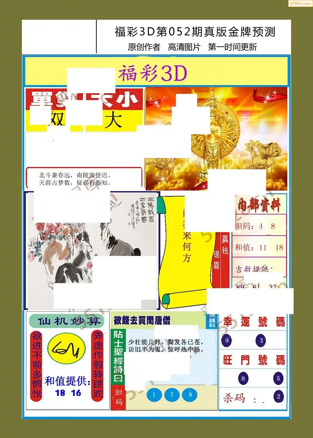 福彩3D052期天牛彩吧套图整合总汇