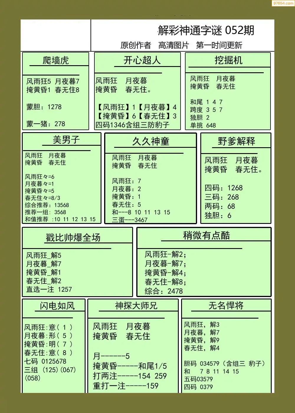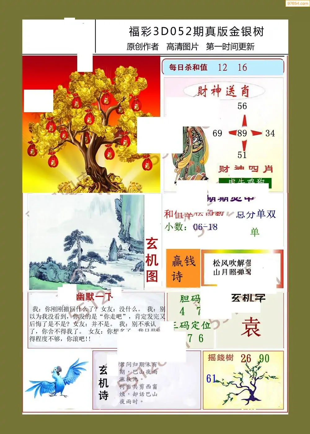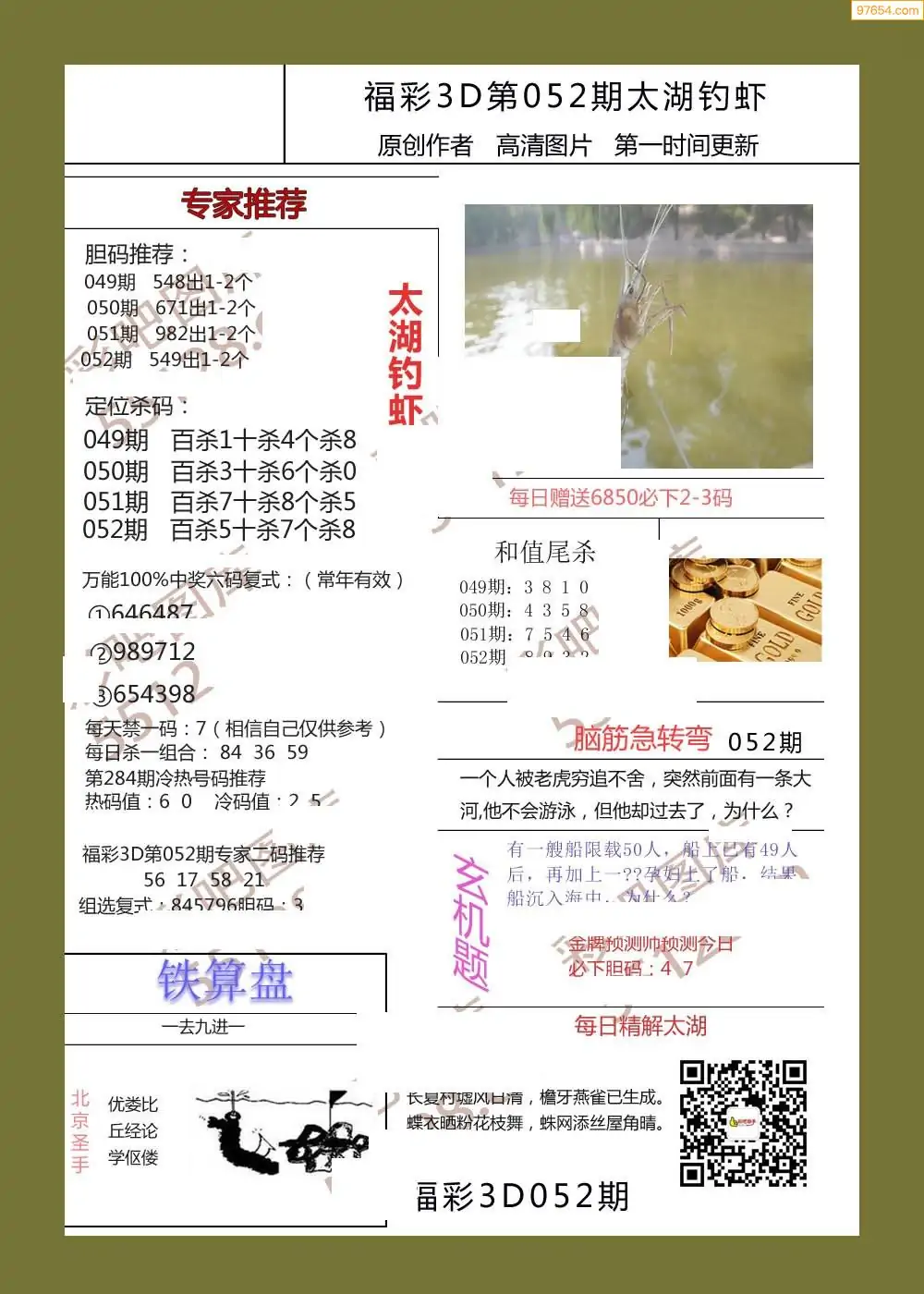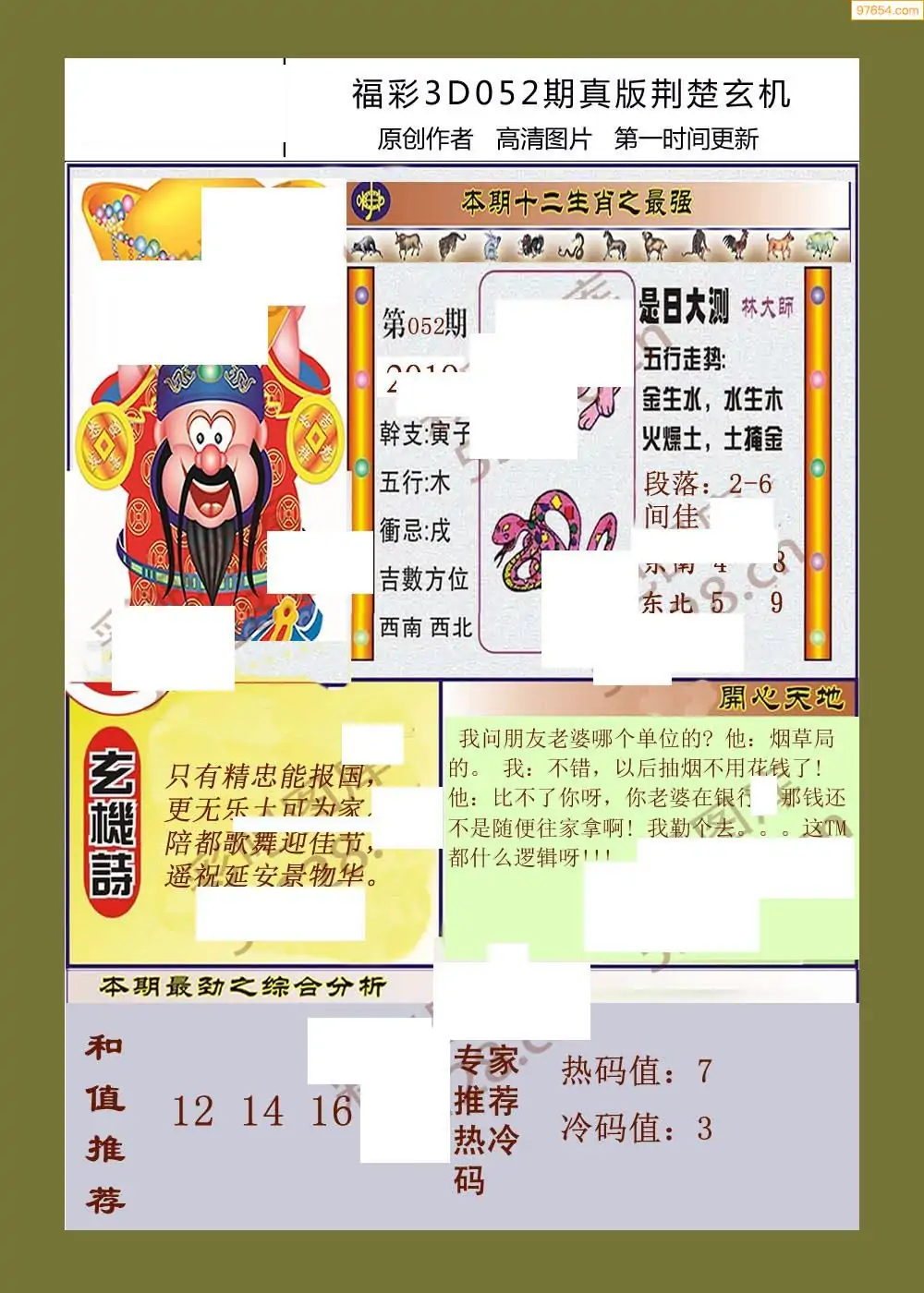 福彩3D052期天牛彩吧套图整合总汇
