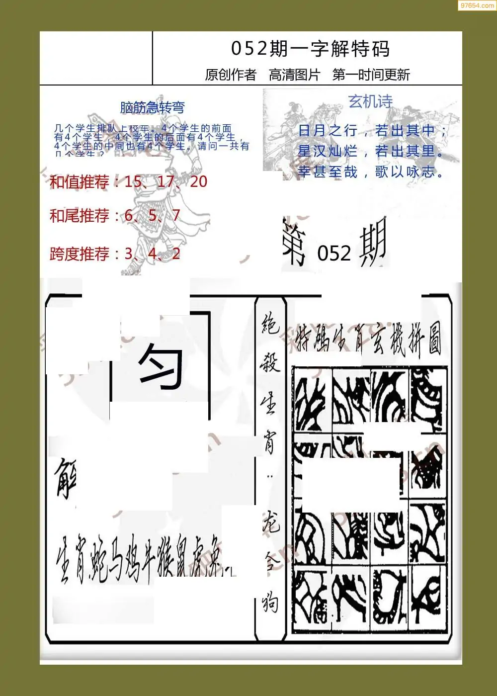 052期福彩天机壁怪字图