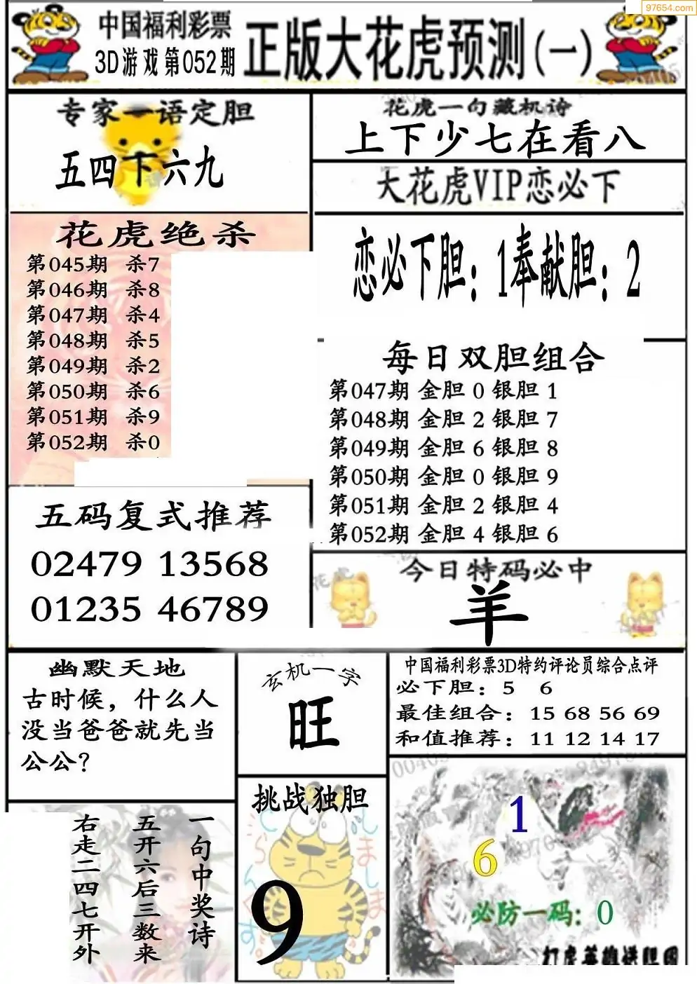 052期3D牛彩预测报+彩吧字谜报
