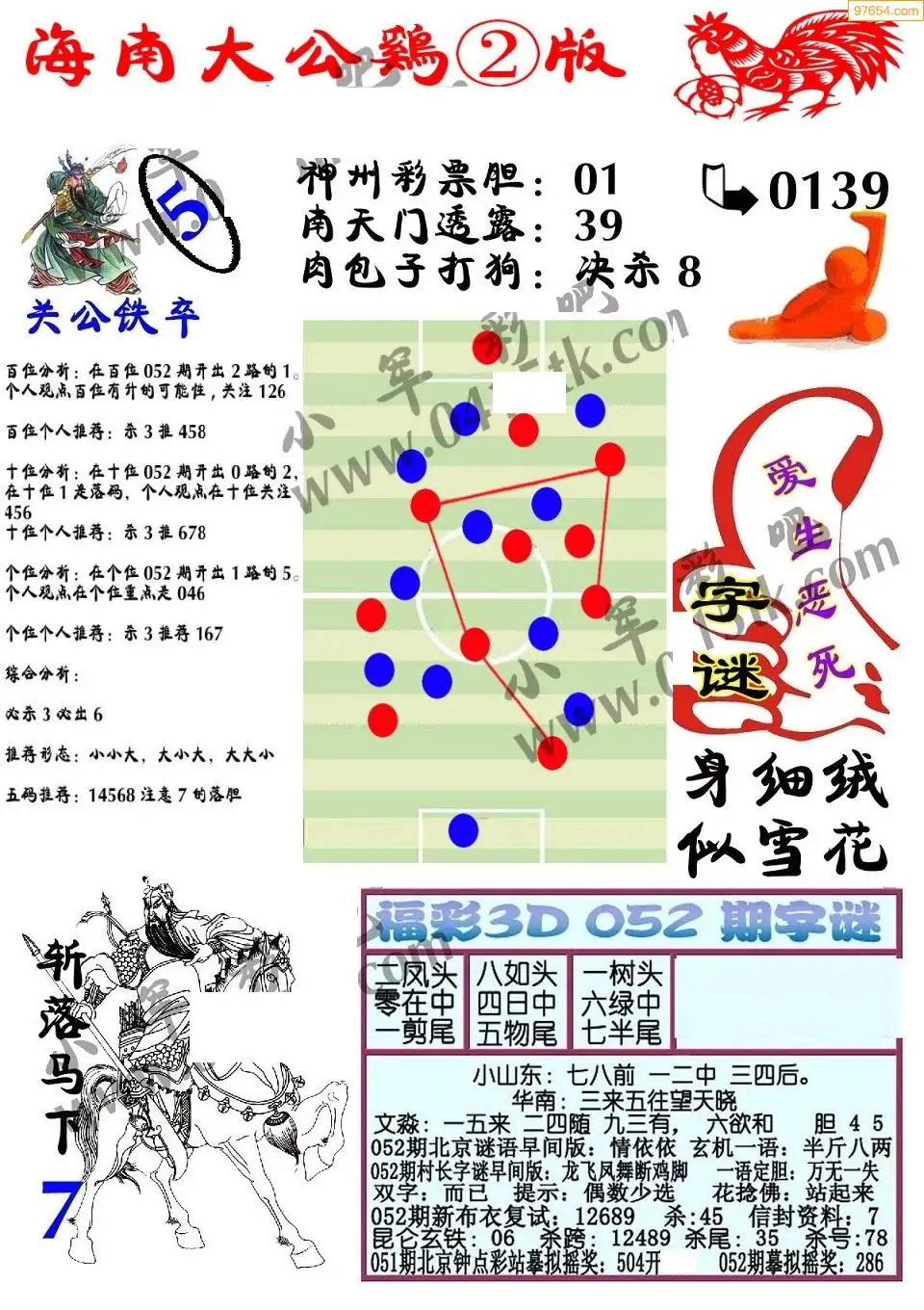 052期3D牛彩预测报+彩吧字谜报