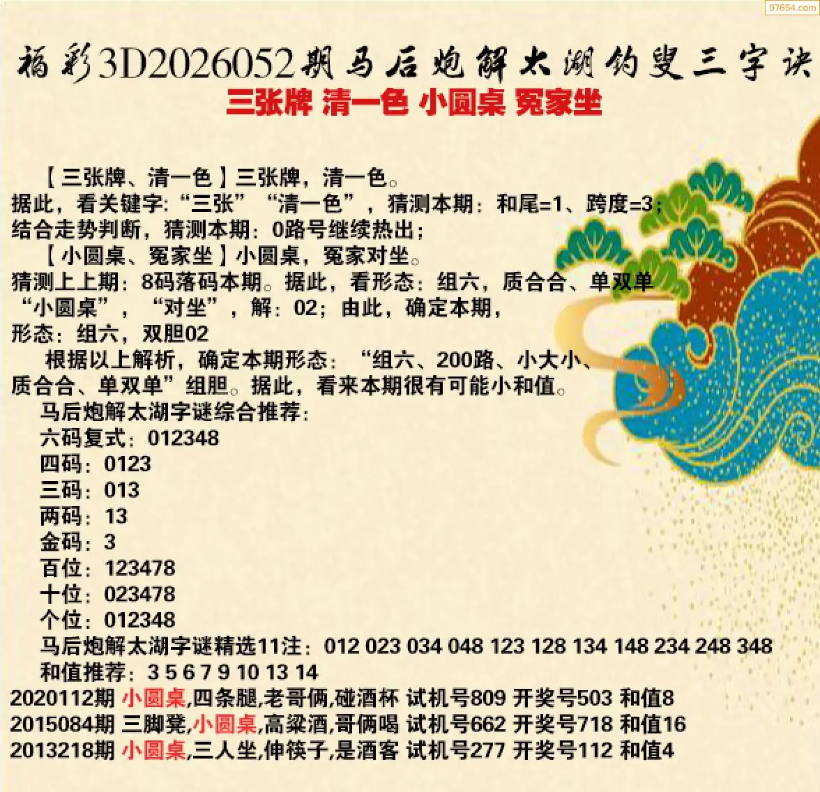 26年052期马后炮解3d太湖钓叟之 三张牌