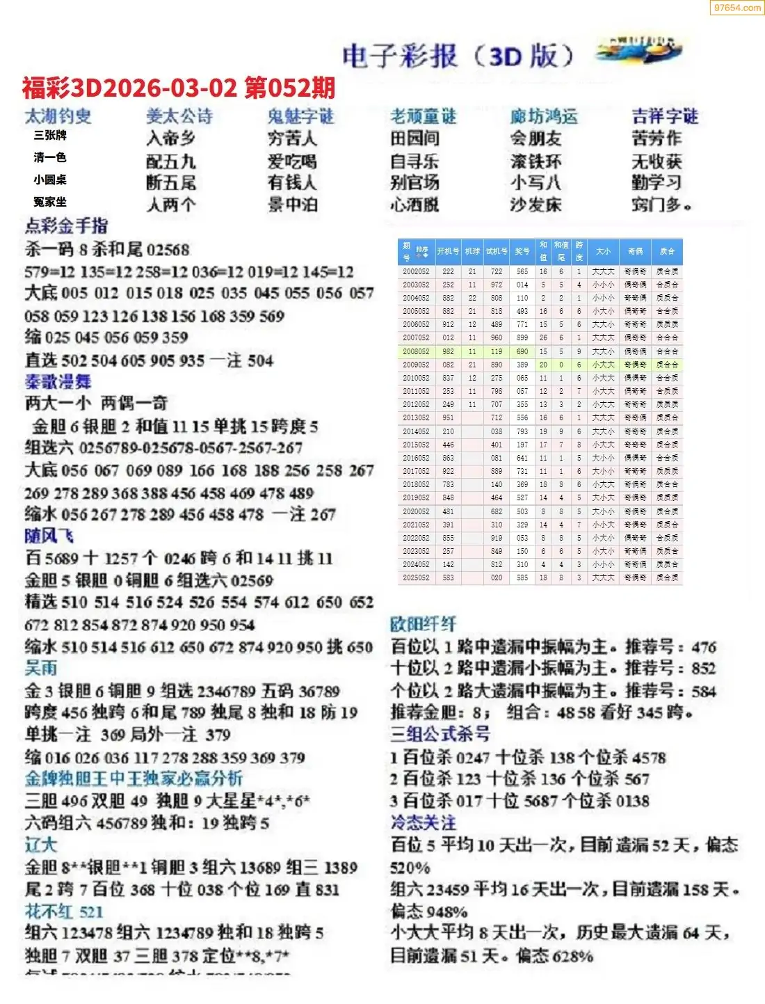 26年052期3D各板块资料整合汇总