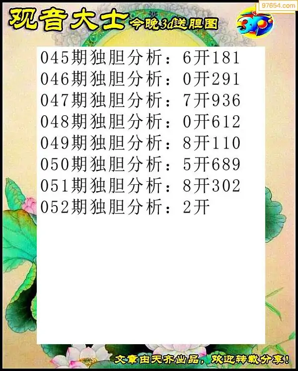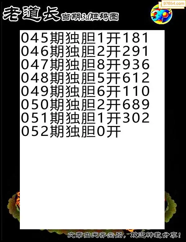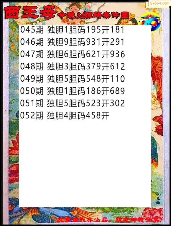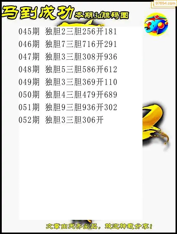 052期97654本站收集胆码出号预测