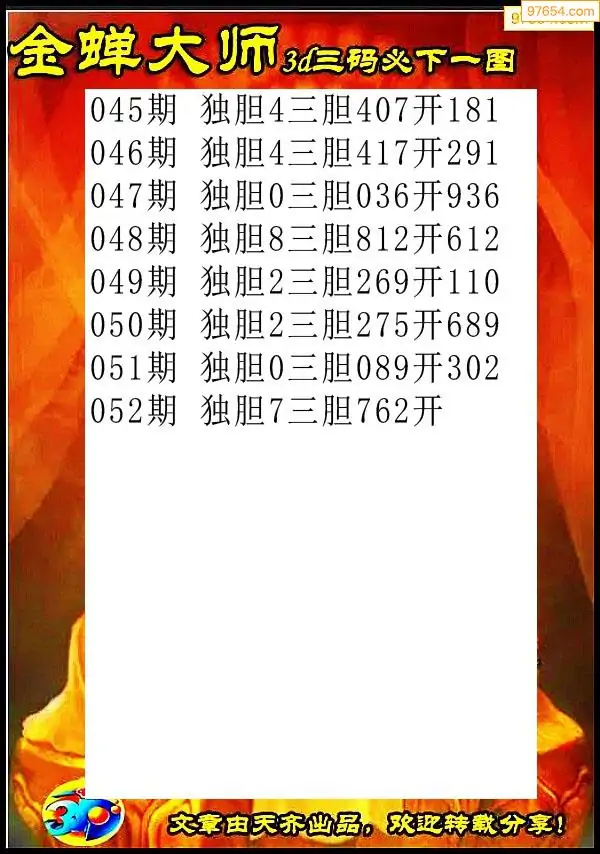 天齐网3d26年052期胆码图 胆:07