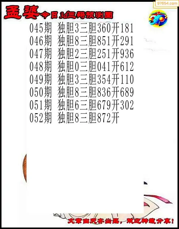 26052期杨麻子_福彩胆码计算方法